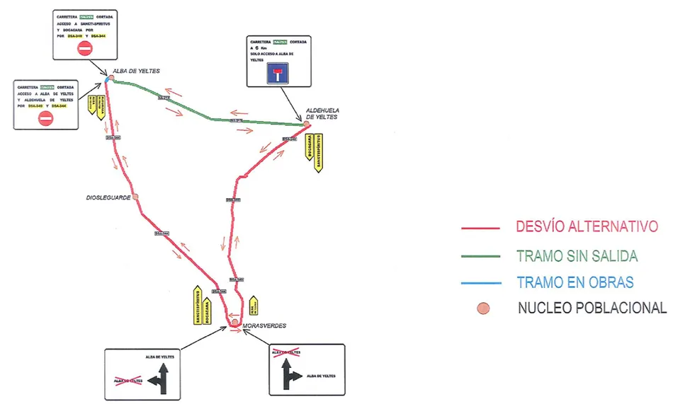 Lo que deben hacer los vehículos que vengan desde la SA-213 es desviarse hacia Diosleguarde y continuar por Morasverdes y Aldehuela de Yeltes, hasta poder alcanzar Alba de Yeltes. En este sentido, desde la Junta de Castilla y León recuerdan que el tramo de carretera desde Aldehuela de Yeltes hacia Alba de Yeltes pasa a ser ?sin salida?, al no poderse ir más allá de Alba de Yeltes.