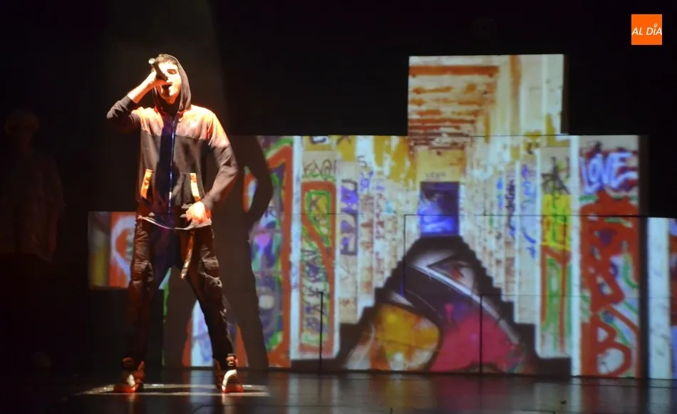 Además del hip-hop, el rap y la danza, sobre el escenario también se entremezclaron el teatro, el videomapping y el teatro documento, causando una grata impresión en el público congregado en el Teatro Nuevo Fernando Arrabal, donde se registró una muy buena entrada teniendo en cuenta las limitaciones de aforo existentes ahora mismo en el recinto.