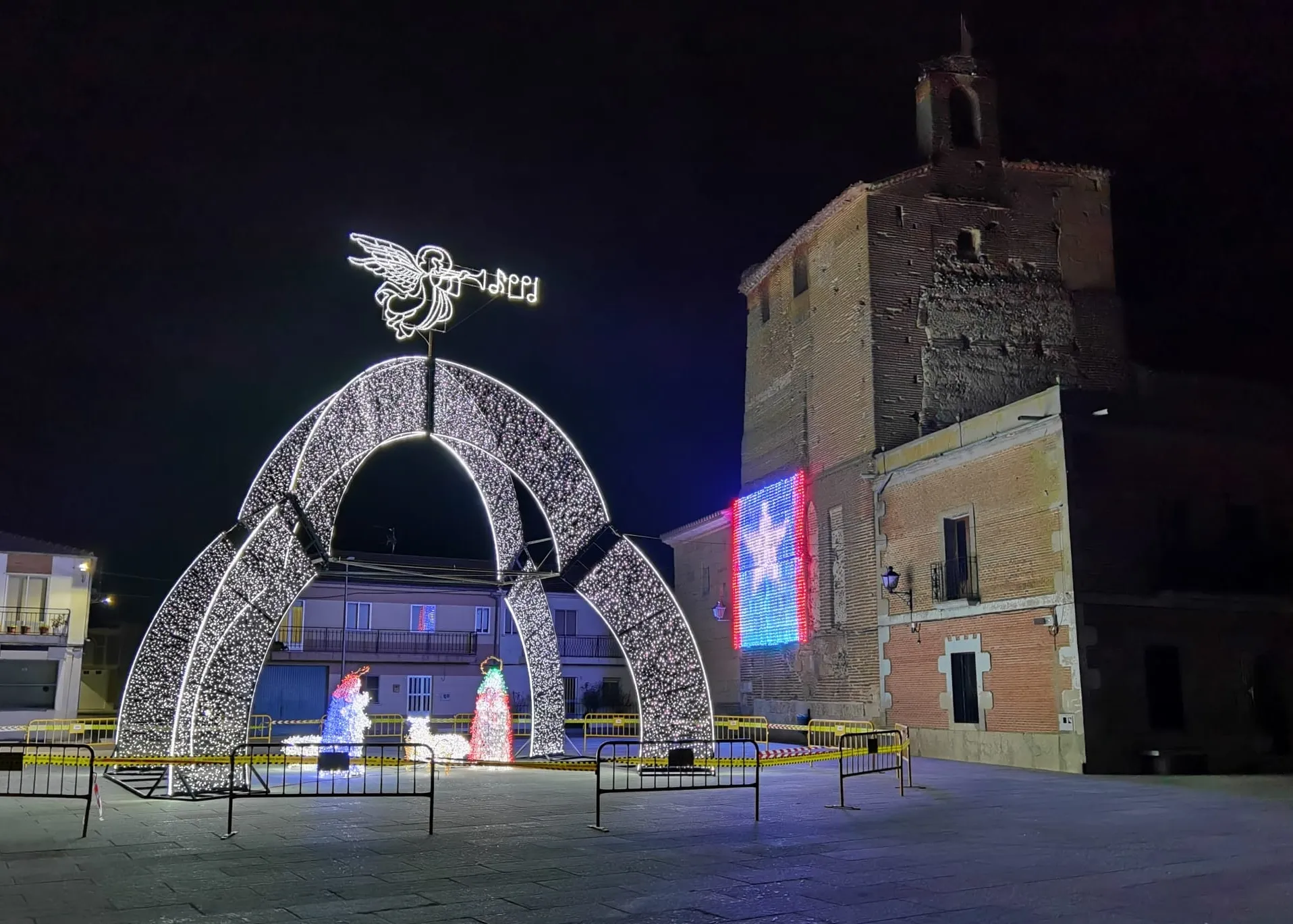 El Ayuntamiento de Villoria ha inaugurado las nuevas luces de Navidad que decoran la plaza de la iglesia. El alcalde, Julián Barrera Prieto ha pronunciado unas palabras antes de encender las luces y proyectar por primera vez el espectáculo de colores y música que reproducen cada día en tres horas diferentes. ?Desde el Ayuntamiento de Villoria no queríamos renunciar a poner un poquito de luz a esta tristeza que vivimos, ni a la ilusión de los más pequeños?, justificó el regidor. ?Queremos poner un poco de luz en esta tristeza que nos invade y esperamos que podamos salir salir a la mayor brevedad posible, esperamos que estéis todos bien de salud?, dijo. Además el alcalde ha ofrecido la ayuda de la entidad municipal a todo aquel que lo precise, ha enviado un mensaje de ánimo y se ha acordado de aquellas personas que se han perdido en este tiempo en la localidad.