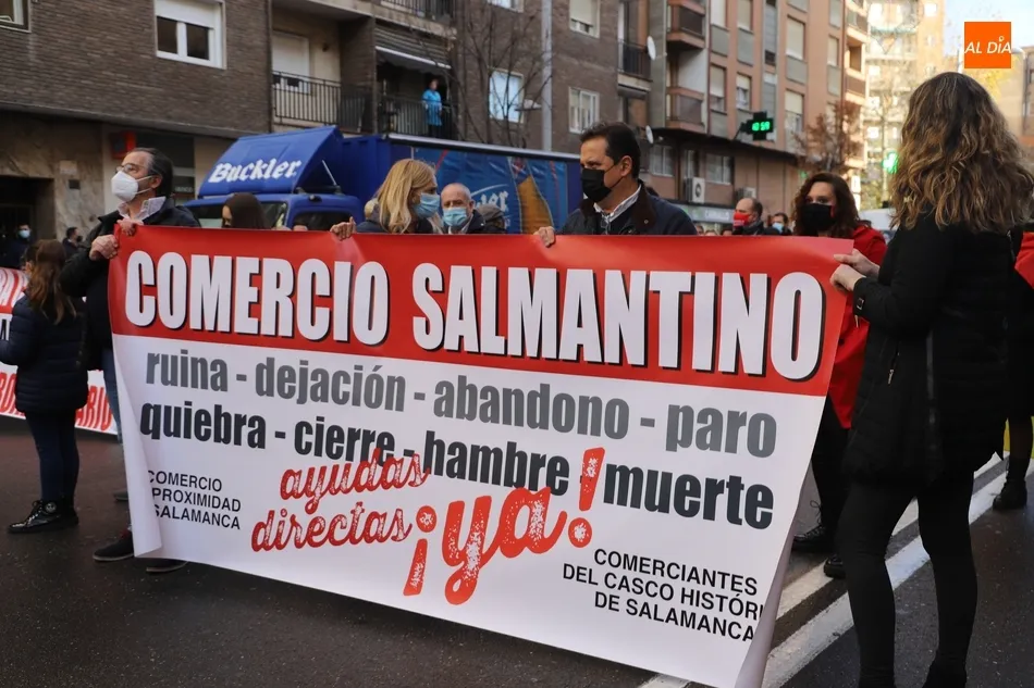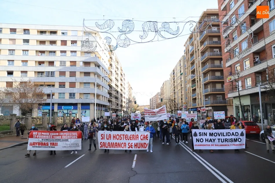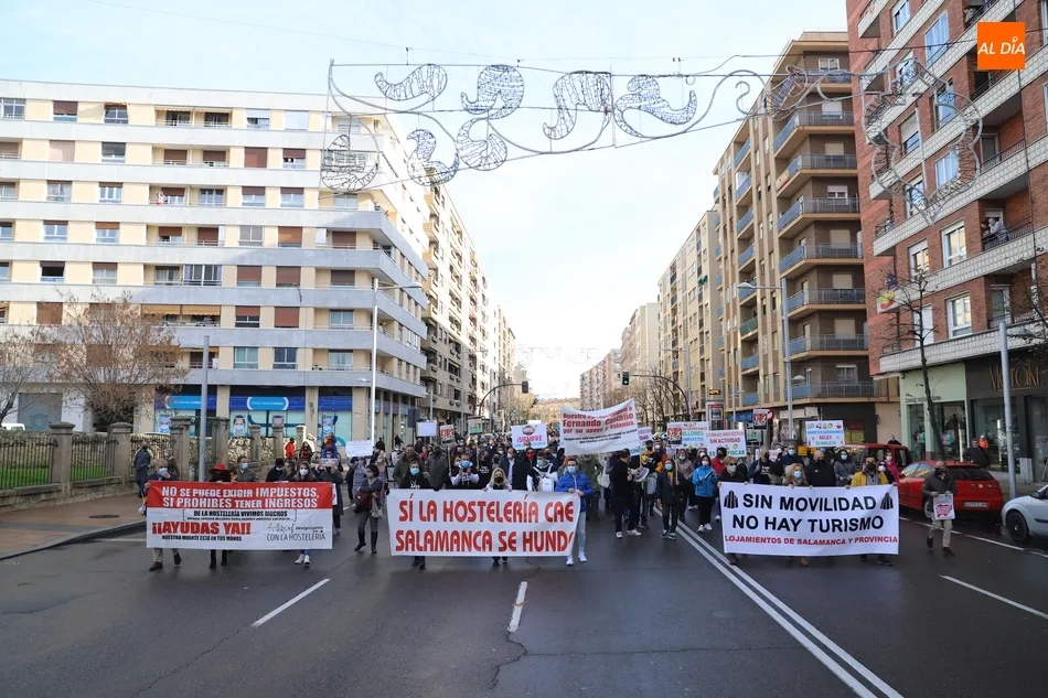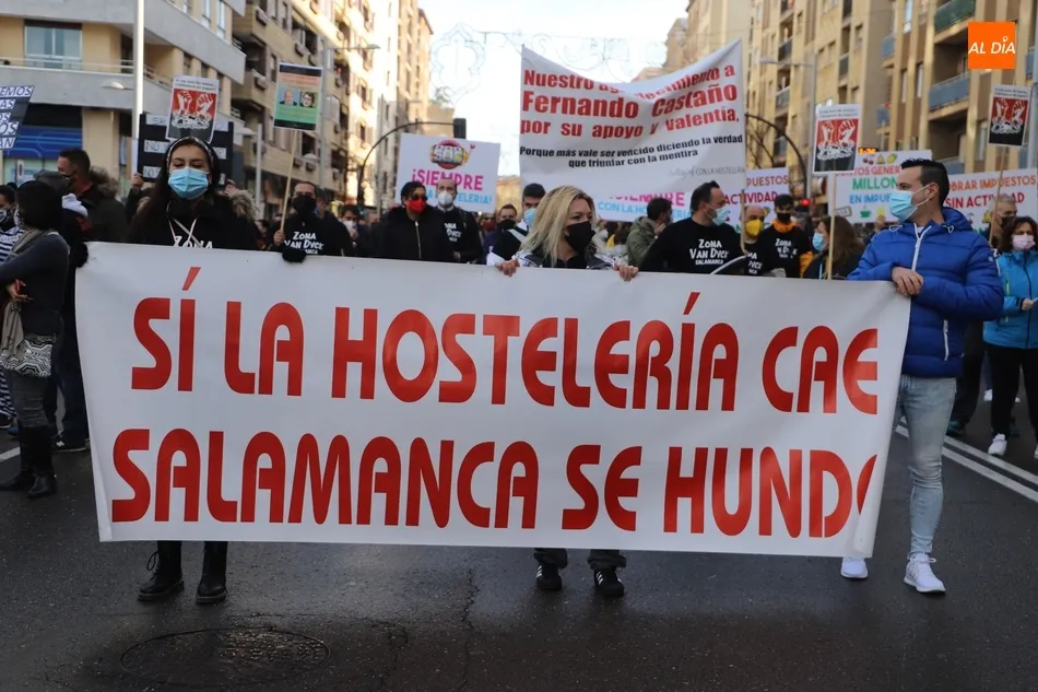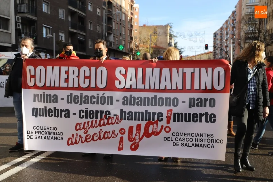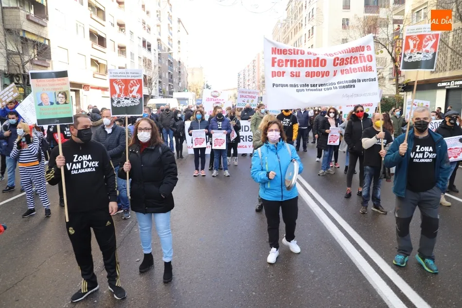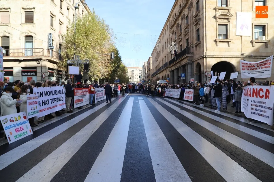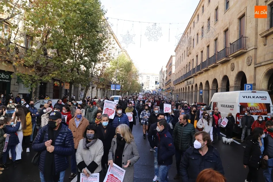 El centro de Salamanca se ha llenado esta mañana con cerca de un millar de autónomos que han clamado contra el Gobierno y han solicitado ayudas por la grave crisis económica que sufren por culpa de la pandemia. Con lemas como ?Necesitamos trabajar? reclamaban ayudas a los negocios ante el cierre obligatorio y la exención de la cuota de autónomo por ese motivo. También reclamaban cubrir el cien por cien de los procesos de ERTE, equiparar la cuota a la media europea, derecho a la prestación por desempleo en caso de enfermedad o quiebra, que el ERTE no cotice por desempleo y la reducción del IVA.