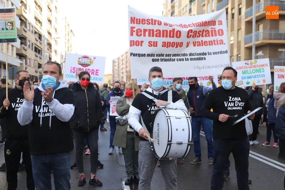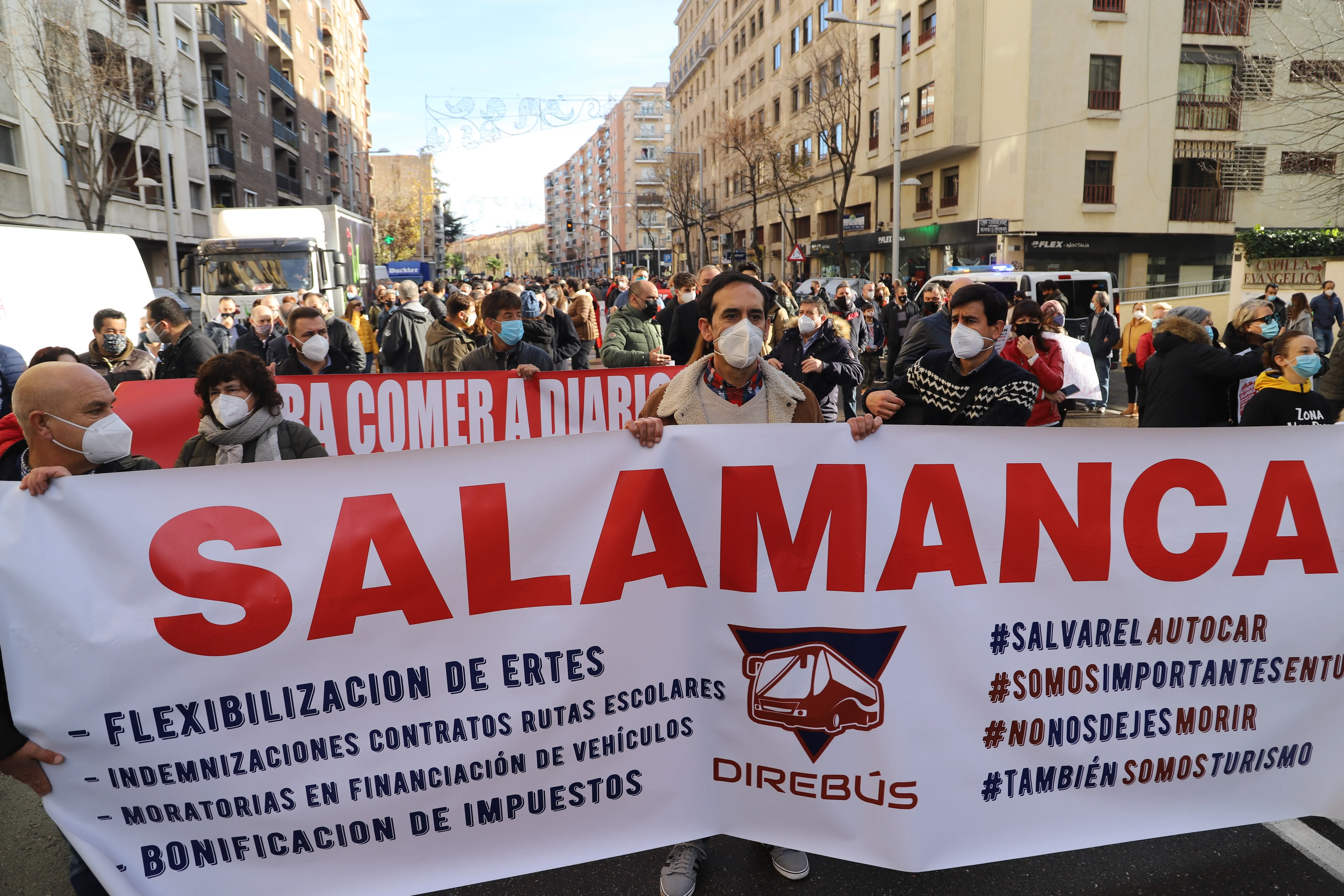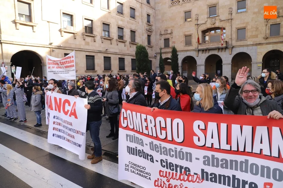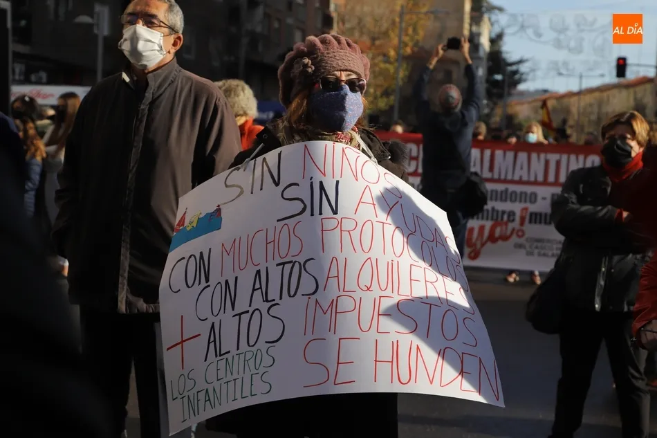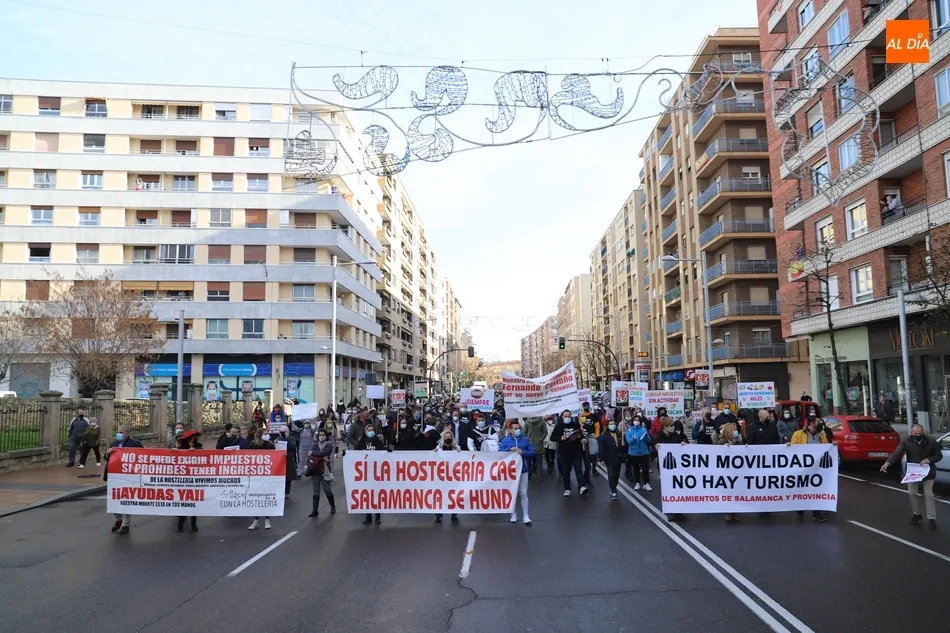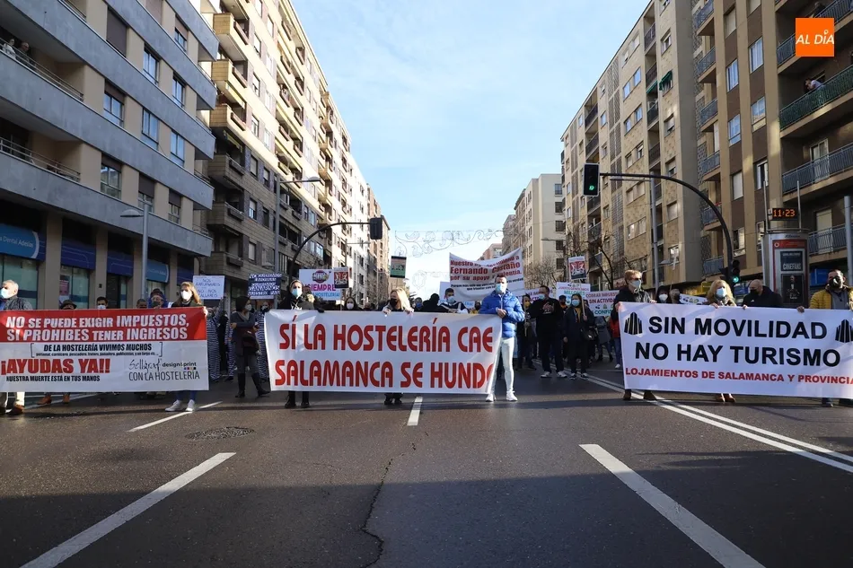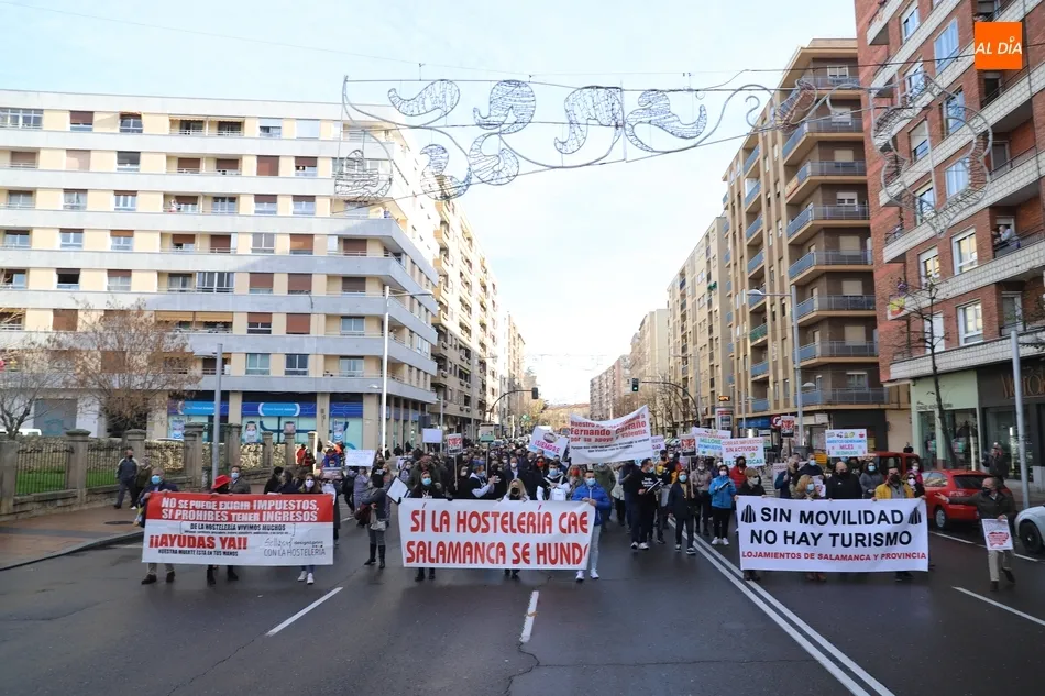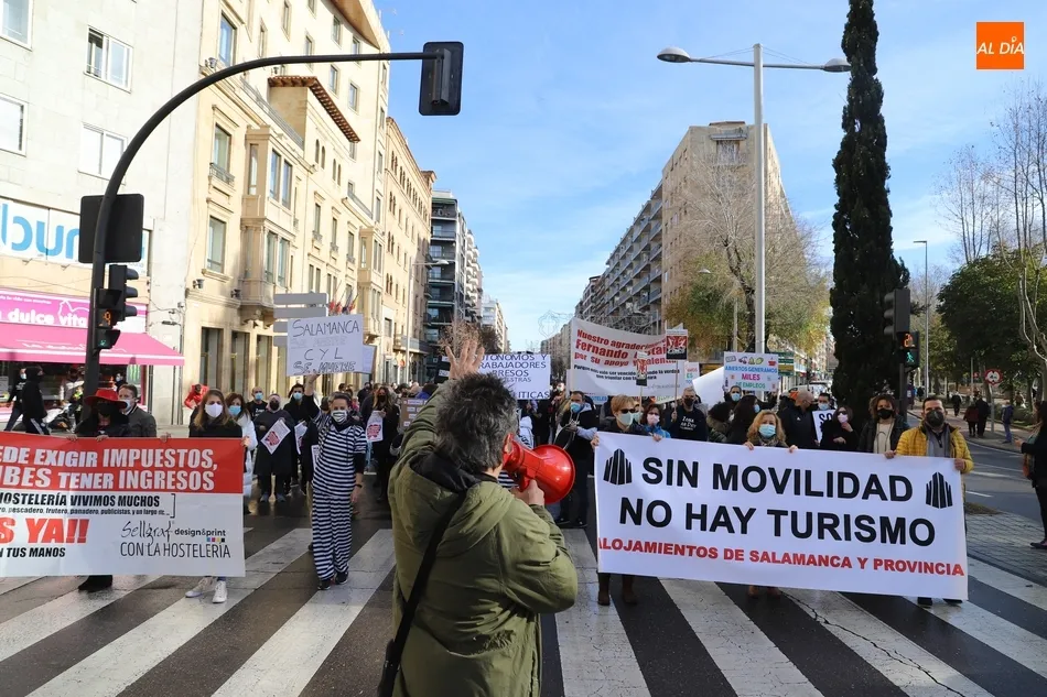 El centro de Salamanca se ha llenado esta mañana con cerca de un millar de autónomos que han clamado contra el Gobierno y han solicitado ayudas por la grave crisis económica que sufren por culpa de la pandemia. Con lemas como ?Necesitamos trabajar? reclamaban ayudas a los negocios ante el cierre obligatorio y la exención de la cuota de autónomo por ese motivo. También reclamaban cubrir el cien por cien de los procesos de ERTE, equiparar la cuota a la media europea, derecho a la prestación por desempleo en caso de enfermedad o quiebra, que el ERTE no cotice por desempleo y la reducción del IVA.