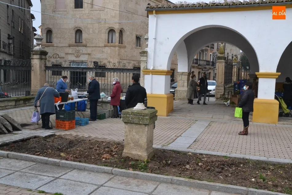 El tradicional Mercado de frutas y verduras que tiene como escenario todos los martes del año la Plazuela del Buen Alcalde de Ciudad Rodrigo ha vivido esta semana una novedosa sesión ante el cambio de ?decorado? que ha sufrido el lugar en los últimos días.