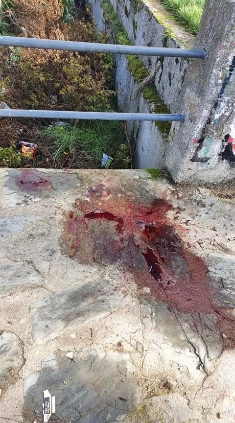 El reguero de sangre, según puede verse en las imágenes, se encuentra junto a la barandilla anexa a la fuente, mientras que los órganos han sido lanzados a la hierba.