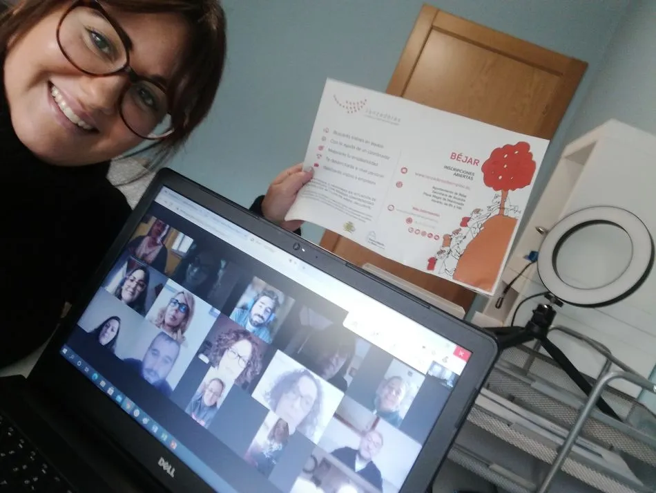 El formato de la Lanzadera de Empleo de Béjar es semipresencial, es decir, presencial y online. Las personas que participan tienen sesiones virtuales, a través de diferentes aplicaciones, como Meet; y sesiones presenciales en el Centro de emprendimiento local y ocio activo ?El Mercao?. Allí están distribuidos en grupos reducidos, cumpliendo todas las medidas de seguridad, higiene y distancia social establecidas por la pandemia.