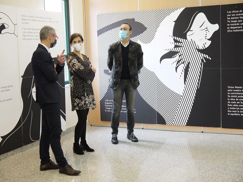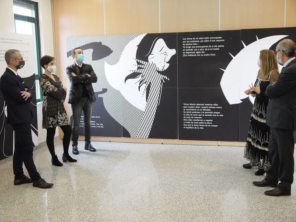?Un beso en la frente? es una historia real de violencia de género contada con las palabras de la autora del libro, Esther del Brío, y que la ilustradora Pilar Vega ha puesto en imágenes. Esta muestra se puede disfrutar en la Casa de Cultura hasta el próximo día 21 de diciembre.