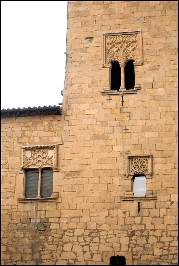 otunda y abierta a todos los vientos que se adorna, en la sólida fortaleza, con cuatro ventanas góticas, todas diferentes, entre los pesados sillares de piedra y las saeteras dispersas que nos recuerdan su voluntad defensiva.