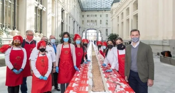 En la realización solidaria del proclamado como 'turrón de chocolate más grande del mundo' ha participado la vicealcaldesa de Madrid, Begoña Villacís, acompañada por el director general de Turismo, Héctor Coronel. La actividad se desarrolla este viernes, sin público, desde las 10 y hasta las 19 horas. Será un notario quien certifique, al terminar la fabricación del turrón, la obra realizada por el maestro chocolatero Justo Almendrote.