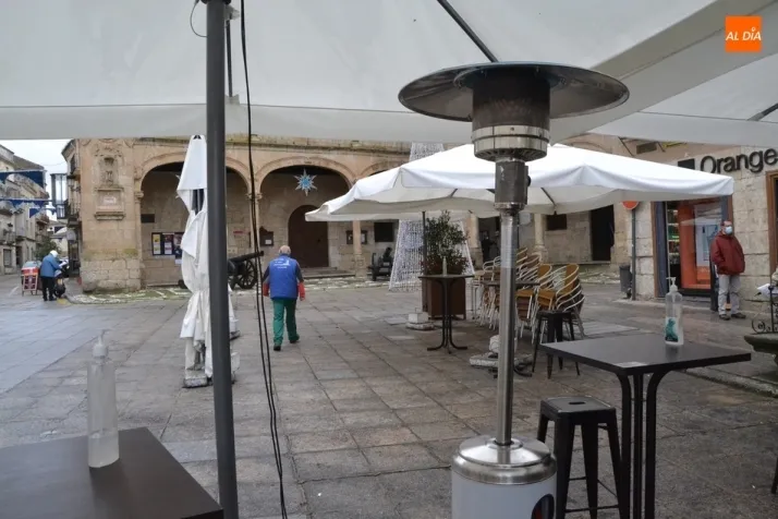 De este modo, se hace más ?incómodo? estar en las terrazas, lugares que van a seguir concentrando la actividad hostelera ya que el interior de los locales permanecerá por el momento al 33% de aforo, además de no poderse consumir en las barras ni de pie. En varias de las terrazas de Ciudad Rodrigo ya se podían ver en la mañana del viernes estufas de pie para hacer más llevadera la estancia en las mismas.