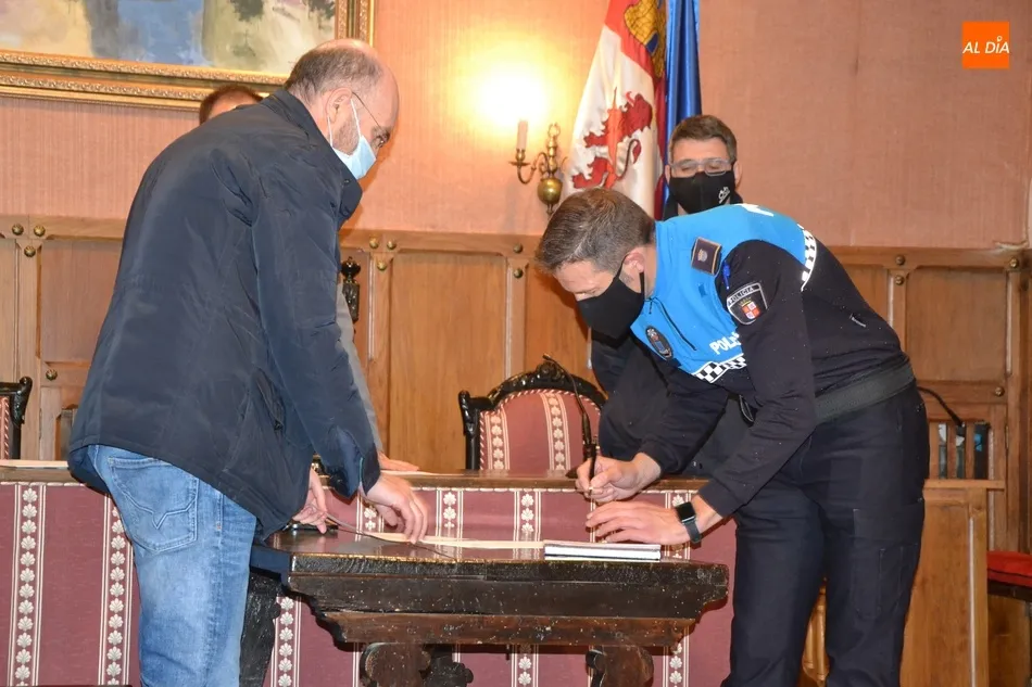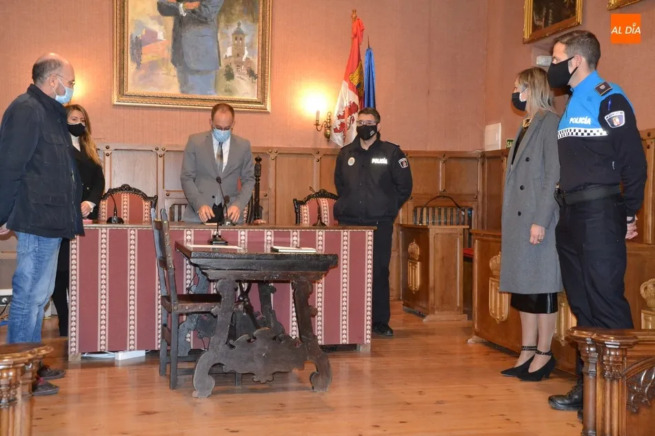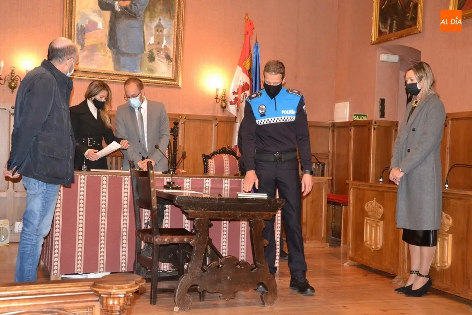 El nuevo agente es Jesús Antonio Hernández Collado, natural de Ciudad Rodrigo, como remarcó durante el acto el alcalde Marcos Iglesias, quién evocó que ?somos del mismo barrio y jugábamos juntos de pequeños, por lo que para mí es un orgullo? su incorporación a la Policía Local, que se produce tras haber decidido trasladarse junto a su familia desde Zamora, donde también había obtenido plaza.
