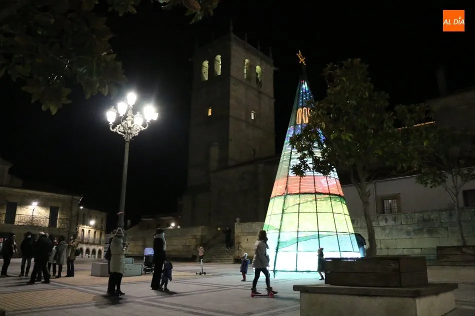 Desde la tarde de este viernes, 4 de diciembre, Vitigudino aparece vestido de Navidad. A las siete de la tarde tenía lugar el encendido de la iluminación navideña, que este año se ha visto ampliada a dos puntos más junto el tradicional árbol de Navidad instalado en la Plaza de España, acompañado de villancicos.