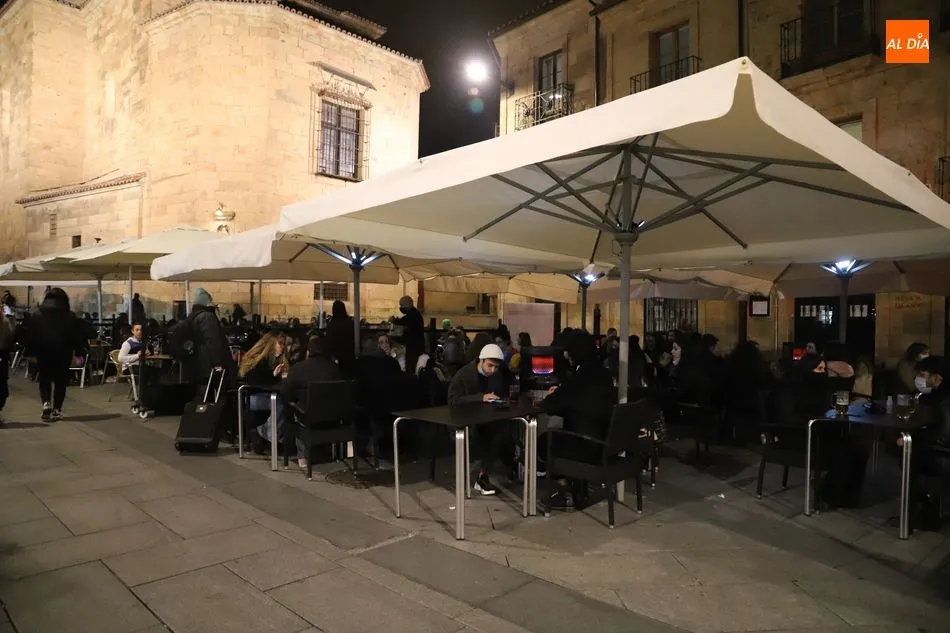 Pese a las bajas temperaturas que está experimentando Salamanca este puente, con mínimas bajo cero y máximas de tan solo 6 grados, el público tiene ganas de celebrar el final de las restricciones de la hostelería, por lo que tras la apertura ayer de los negocios tras varias semanas de cierre por el aumento de contagios, el público no pierde la oportunidad de consumir en las terrazas. Los hosteleros han protestado por las limitaciones en los aforos, y no todas las terrazas han logrado llamar la atención del público, pero muchos negocios están aprovechando al máximo la oportunidad de recuperarse económicamente, al menos durante unos días.