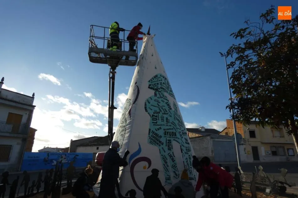 Juani Cortés en representación de Villoruela se Mueve pone en valor el significado de un árbol creado por todos con espíritu navideño