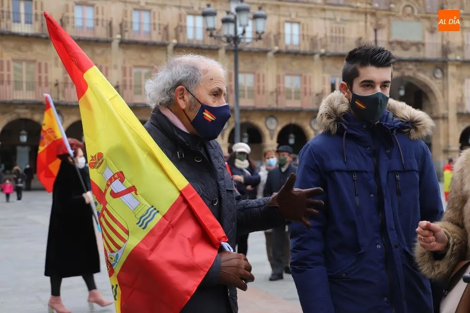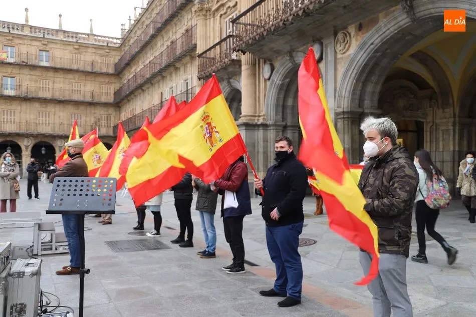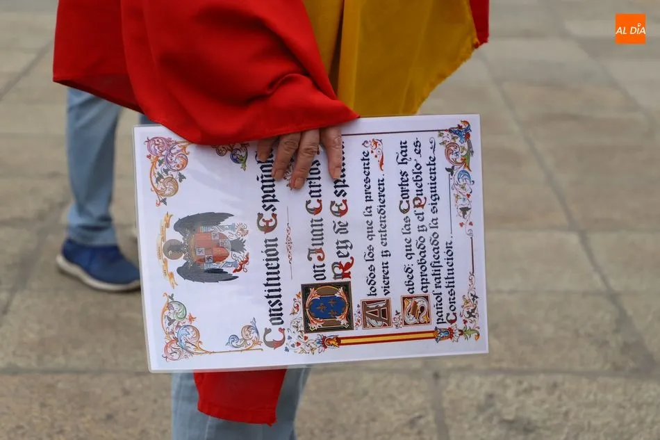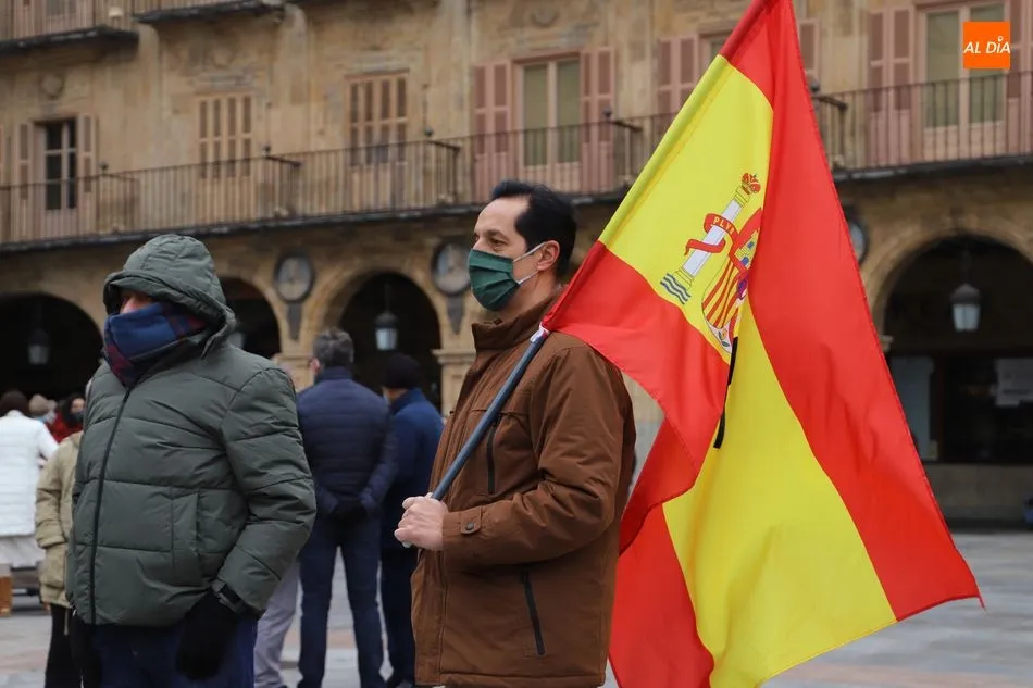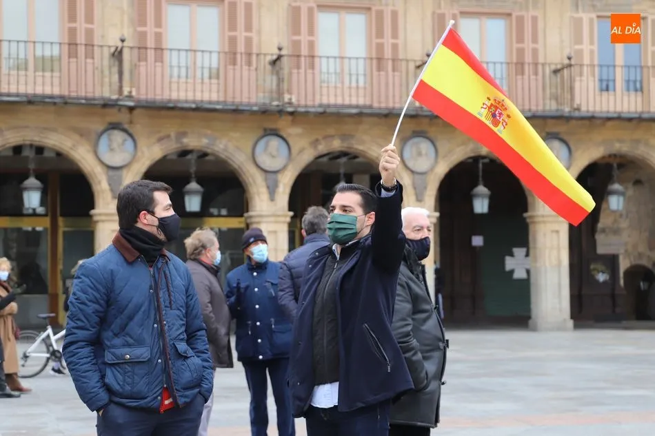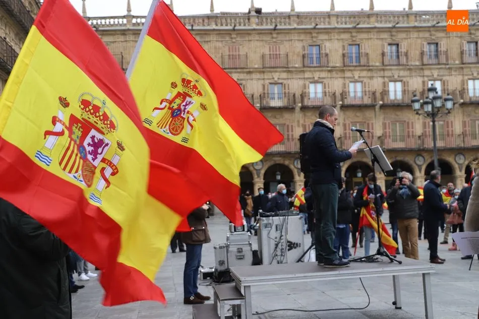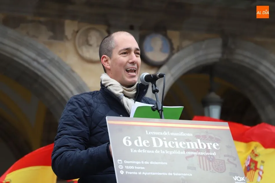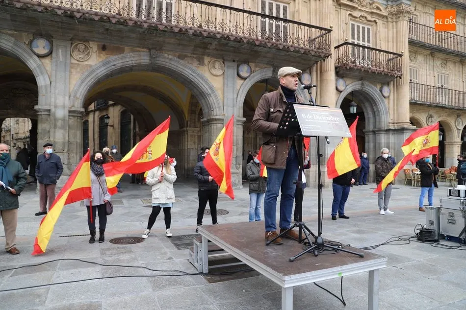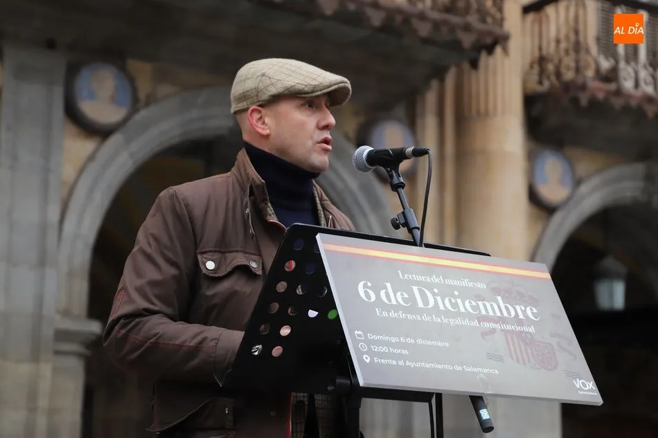La Plaza Mayor de Salamanca ha vivido esta mañana la concentración del partido Vox que llevaba por título ?En defensa de la legalidad constitucional?, convocada por el aniverario de la Constitución. El diputado nacional de Vox por Salamanca, Víctor Gónzalez, se encargó de leer un manifiesto a favor de la carta magna que hoy cumple 42 años.