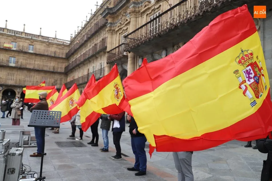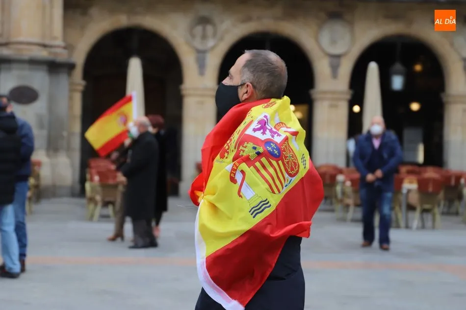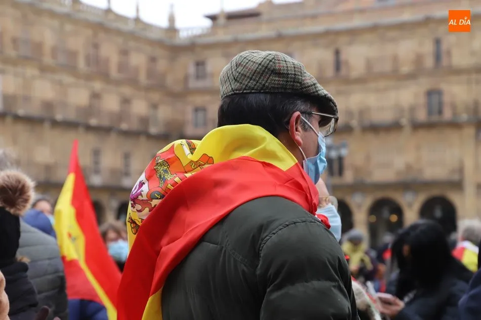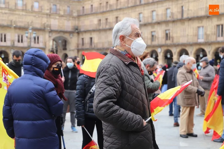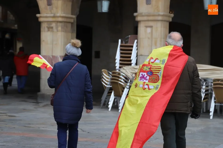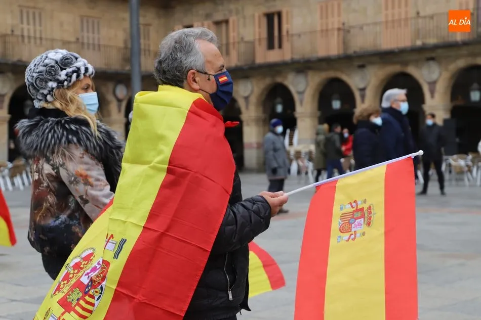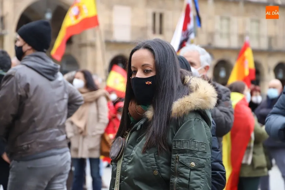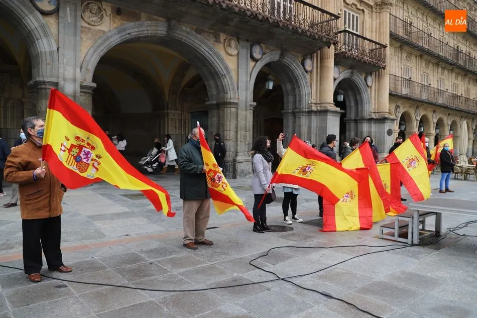 La Plaza Mayor de Salamanca ha vivido esta mañana la concentración del partido Vox que llevaba por título ?En defensa de la legalidad constitucional?, convocada por el aniverario de la Constitución. El diputado nacional de Vox por Salamanca, Víctor Gónzalez, se encargó de leer un manifiesto a favor de la carta magna que hoy cumple 42 años.
