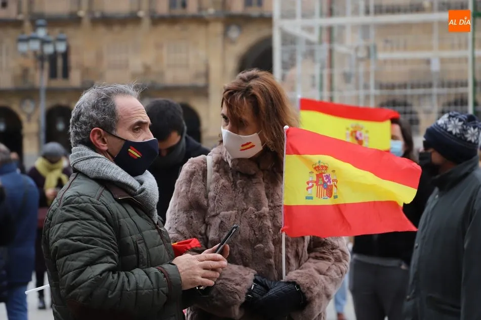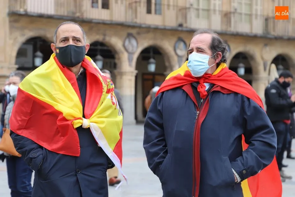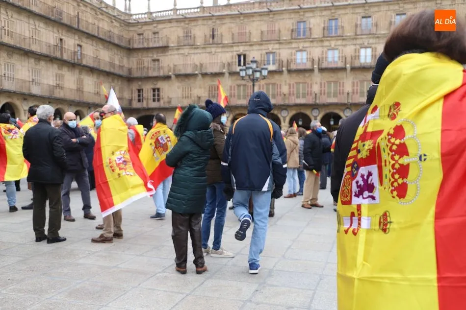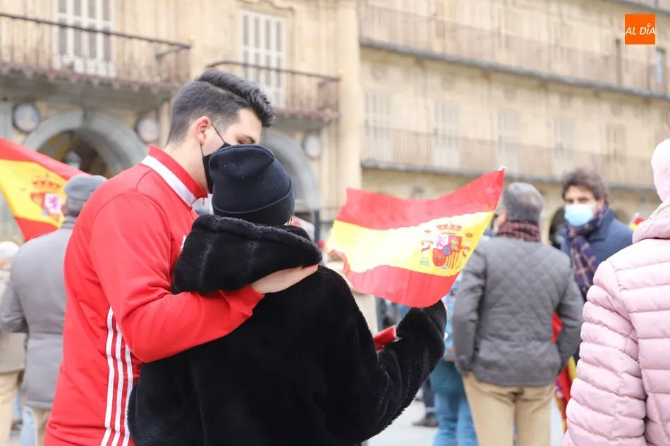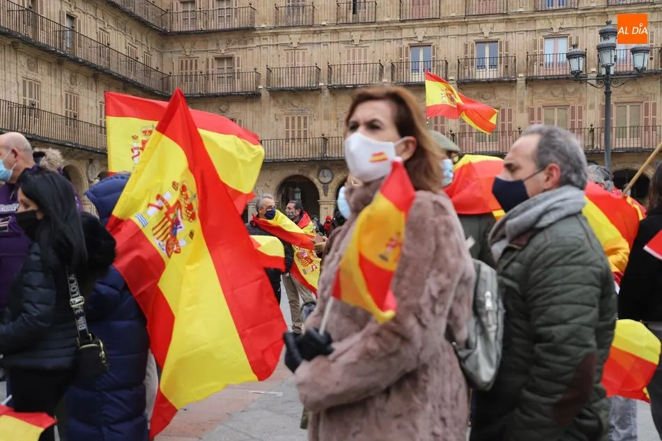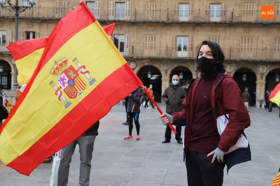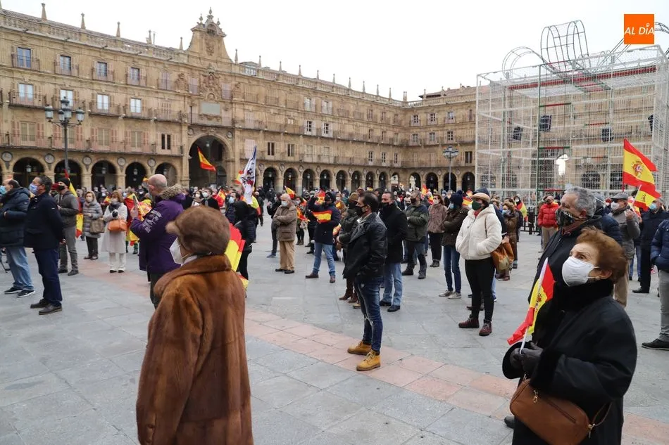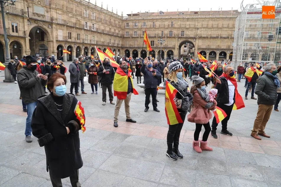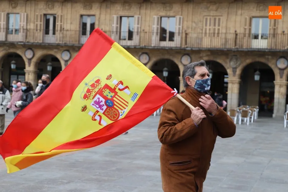 La Plaza Mayor de Salamanca ha vivido esta mañana la concentración del partido Vox que llevaba por título ?En defensa de la legalidad constitucional?, convocada por el aniverario de la Constitución. El diputado nacional de Vox por Salamanca, Víctor Gónzalez, se encargó de leer un manifiesto a favor de la carta magna que hoy cumple 42 años.