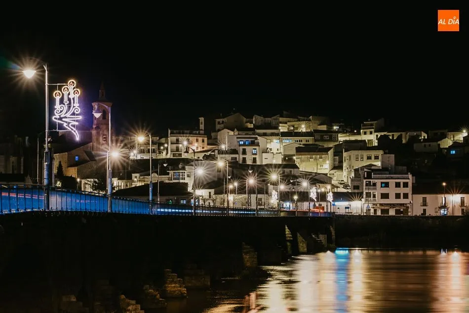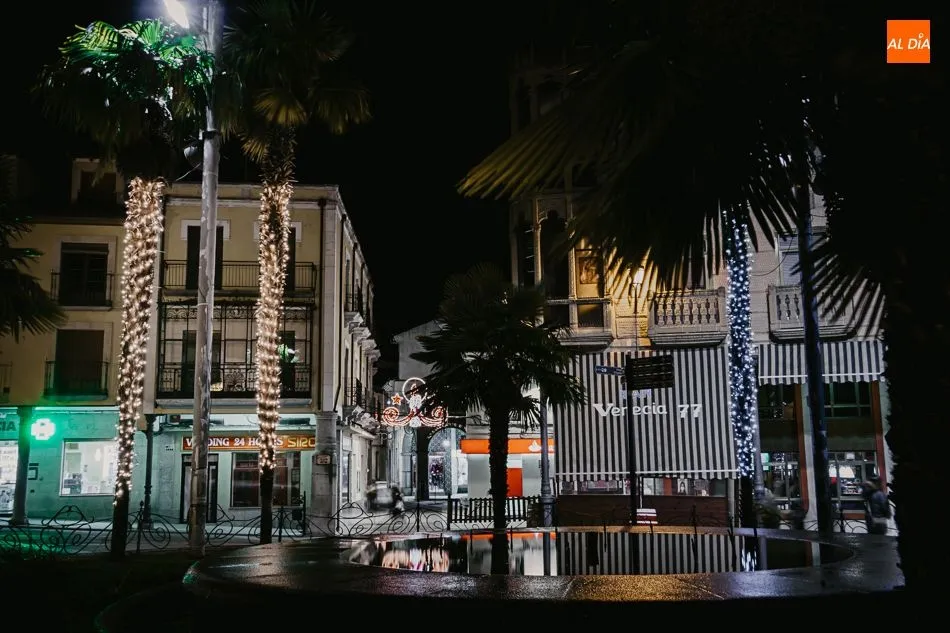 El puente medieval, la carretera Peñaranda, las palmeras de la Plaza Mayor y las calles aledañas al ágora albense son algunas de las zonas iluminadas por el Ayuntamiento de Alba de Tormes en este complicado año 2020.