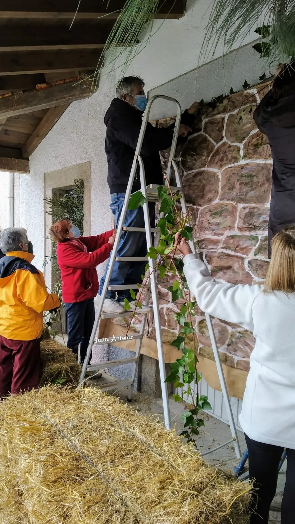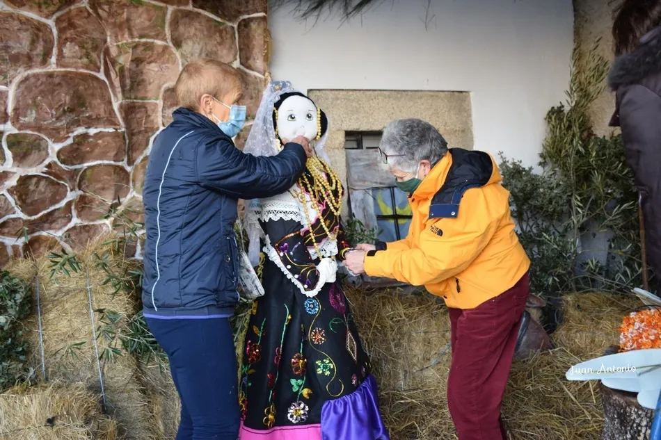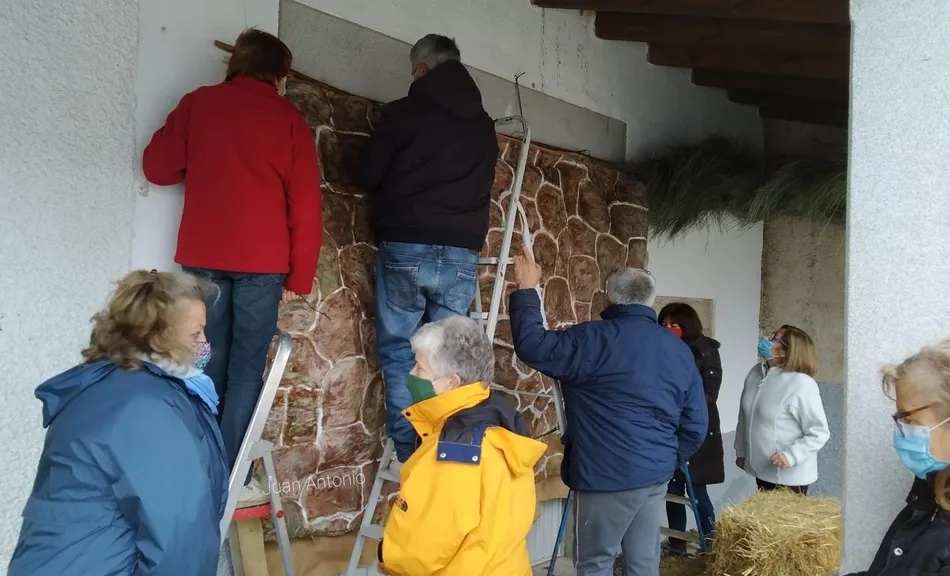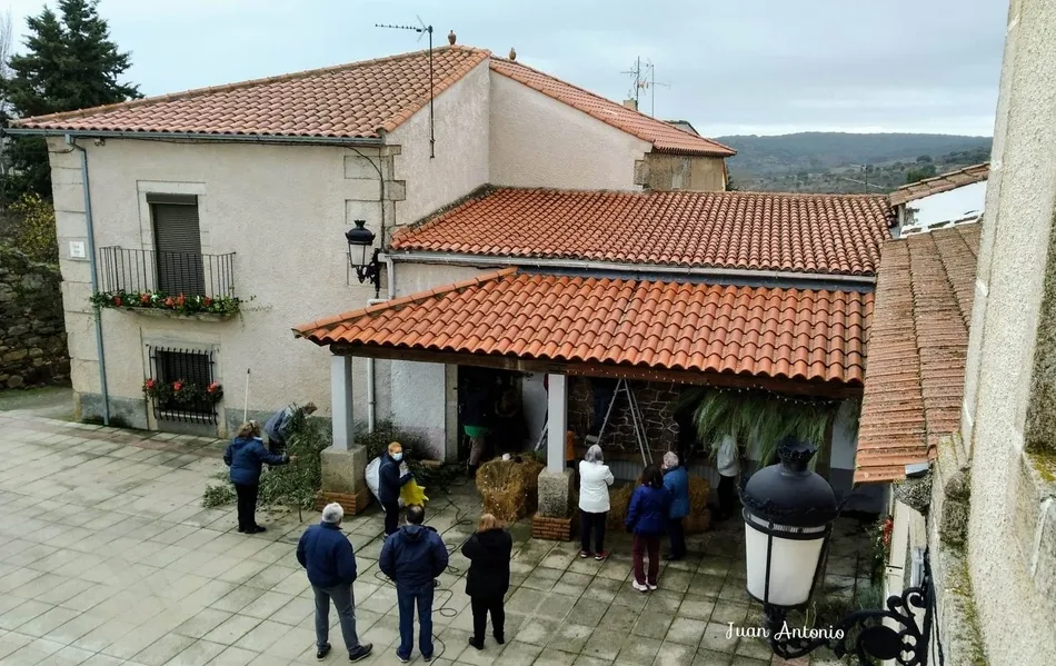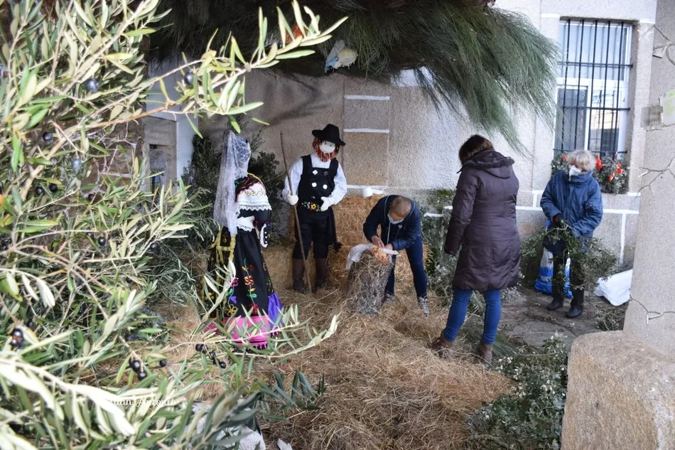 La localidad de Aldea del Obispo se está vistiendo durante este Puente de la Constitución de Navidad, con el despliegue de diversos elementos ornamentales callejeros. Para empezar, un grupo de mujeres del pueblo, ayudadas por algunos hombres, estuvieron en la jornada del lunes montando en la Plaza el tradicional Nacimiento a tamaño natural. En la jornada del martes, proseguirán con los trabajos con el despliegue de la iluminación y el montaje del árbol de Navidad hecho con botellas.