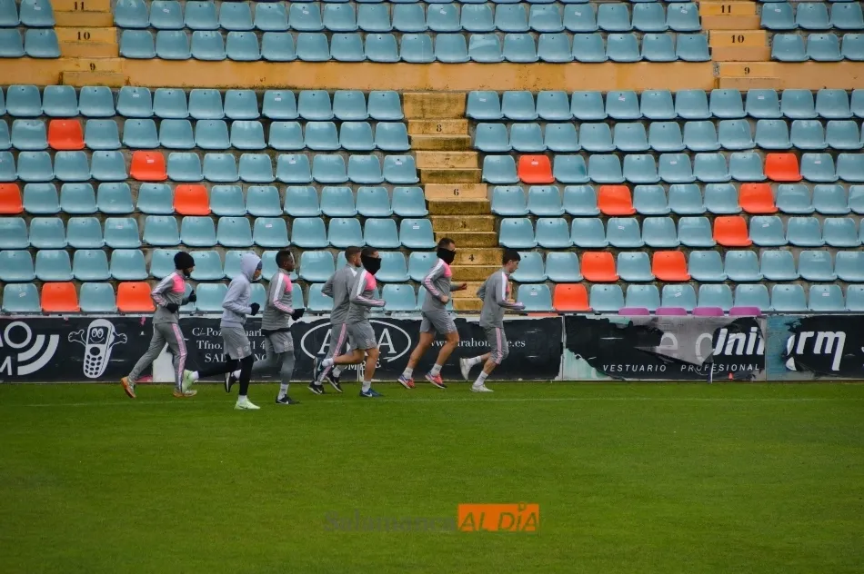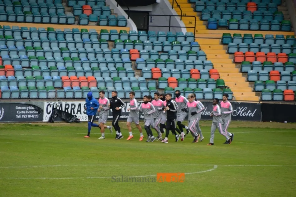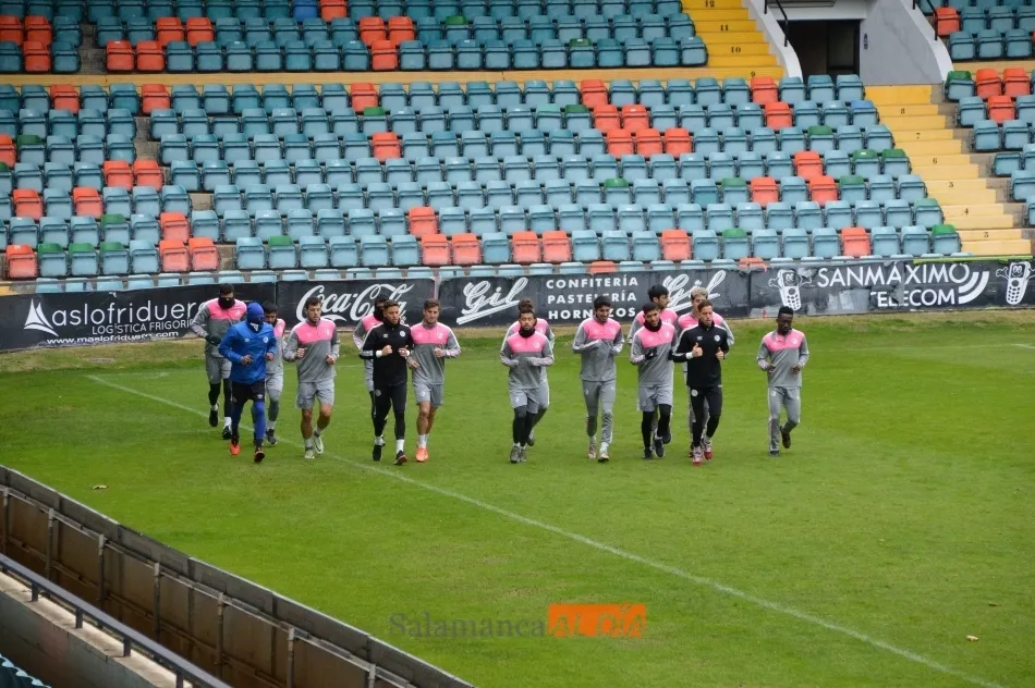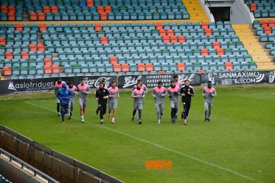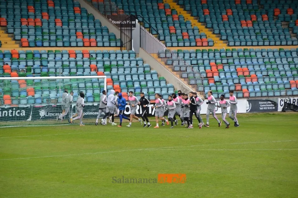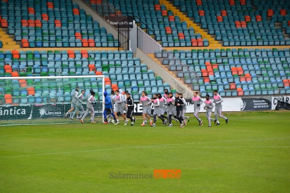 La plantilla se ejercitó sobre el césped del Estadio Helmántico pocas horas después de caer en el Ruta de la Plata