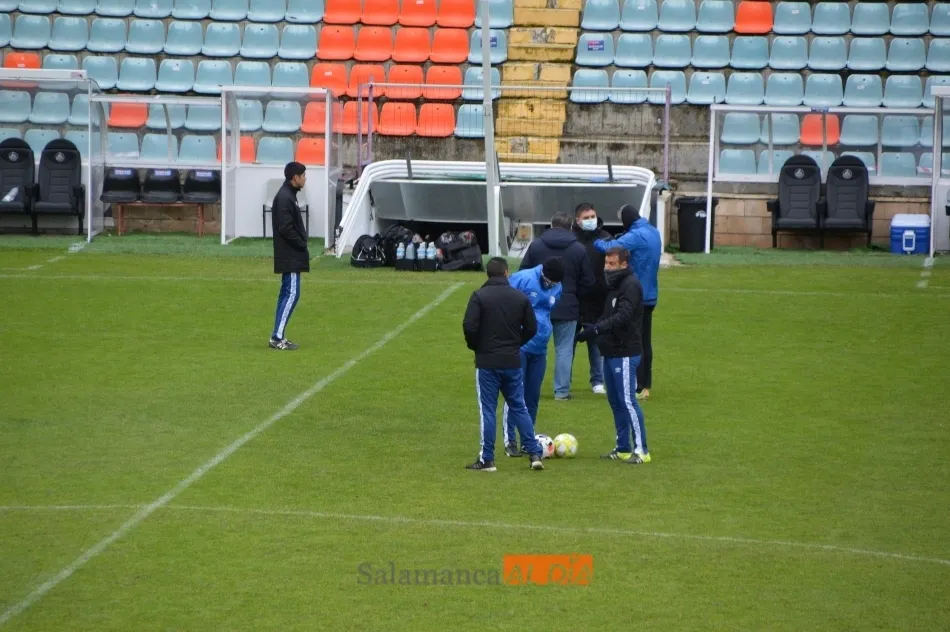 Silencio sepulcral en el entrenamiento del Salamanca UDS tras la derrota en Zamora por 2-0. La plantilla se ejercitó sobre el césped del Estadio Helmántico pocas horas después de caer en el Ruta de la Plata ante un rival que le dominó como quiso durante los 90 minutos que duró el partido.