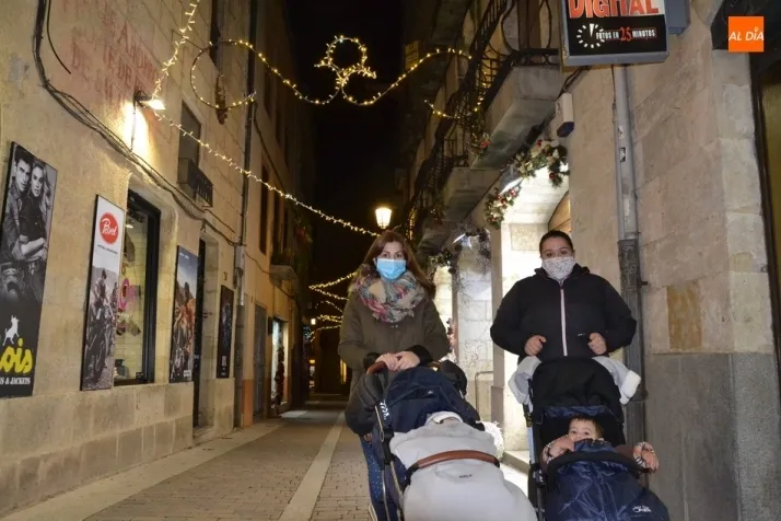 La Navidad está a pleno rendimiento desde la semana pasada en las calles de Ciudad Rodrigo gracias al encendido del alumbrado y a los múltiples elementos decorativos desplegados por comerciantes y vecinos en sus establecimientos y viviendas. Desde ese mismo momento, uno de los planes más atractivos para hacer en Ciudad Rodrigo, sobre todo al caer la noche y encenderse las luces, es recorrer las calles para descubrir todos esos elementos, que llaman especialmente la atención a los más peques de la casa, como los que aparecen en la imagen junto a sus madres, en dos de los puntos más decorados de la ciudad: las calles Madrid y Valera.