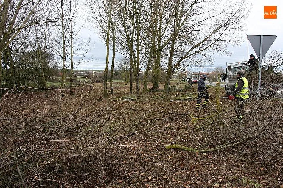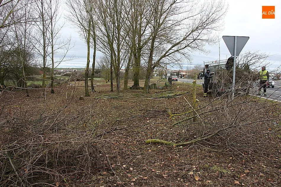 La superficie tratada, de unos 450 metros de longitud por 20 de ancho, ha quedado limpia de zarzas y bardas de chopos, principalmente