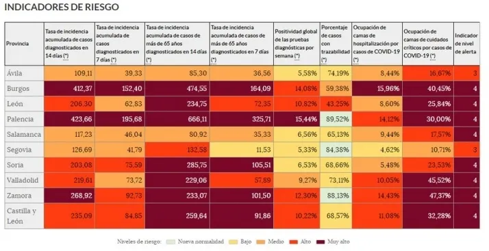 Por otra parte, la web (https://analisis.datosabiertos.jcyl.es/pages/coronavirus/) incluye en su pestaña de 'indicadores de riesgo' los datos del número reproductivo básico por provincias y en el conjunto de la Comunidad, con un margen de cuatro días --este domingo aparece el dato a 9 de diciembre-- acompañado de una gráfica para ver su evolución.