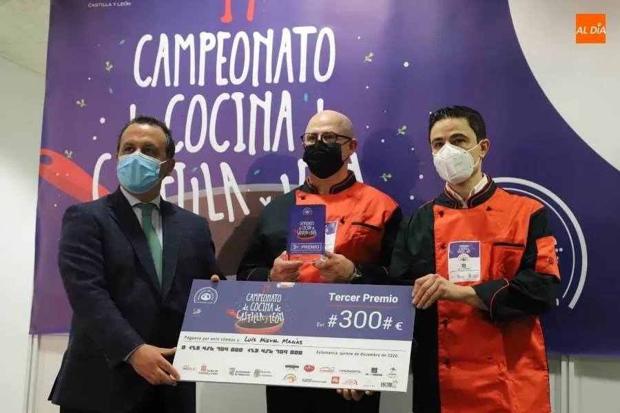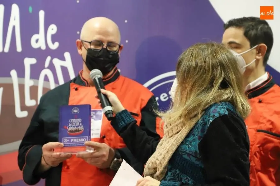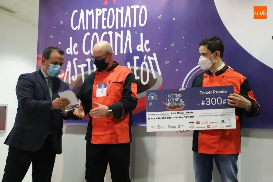 El diputado de Turismo, Javier García Hidalgo y Héctor Carabias, propietario del restaurante ?Oroviejo? y maestre de cocina en Salamanca, han entregado el trofeo y el premio en metálico de 300 euros al tercer premiado.