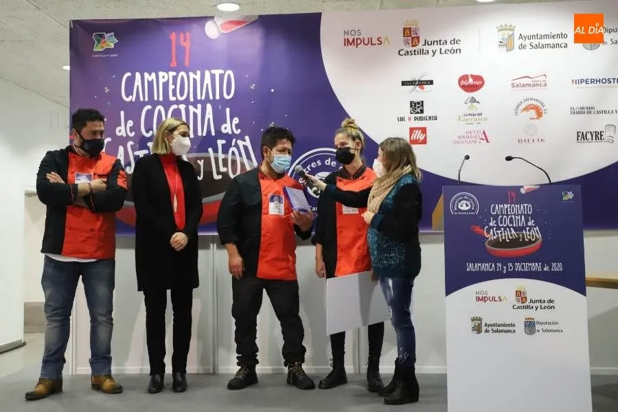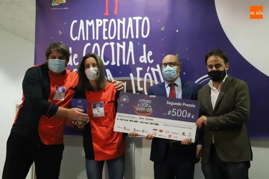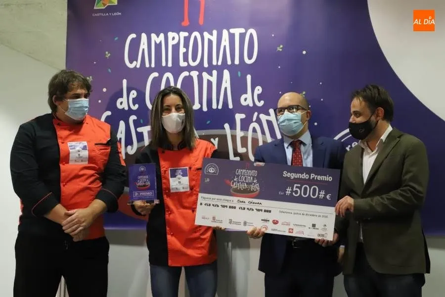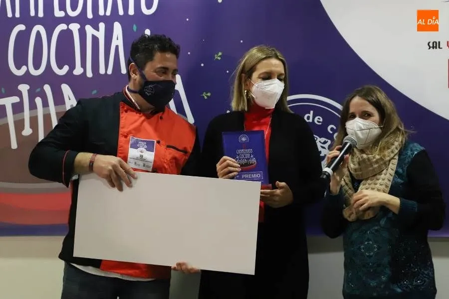 La directora general de Turismo, Estrella Torrecilla, y César Boal, presidente de Maestres de Cocina han entregado al ganador el trofeo y la dotación económica de 800 euros. El concejal de Turismo, Fernando Castaño y Nicolás Sánchez, propietario de ?Don Fadrique?, de Alba de Tormes, maestre de cocina en Salamanca han entregado a Sara Cámara, del restaurante Rivas, el segundo premio, el trofeo y 500 euros.