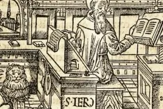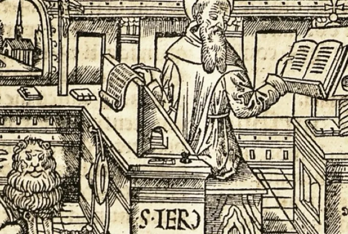 La exposición ?El león y la pluma? recoge la vida y el trabajo de San Jerónimo. Vivió entre los siglos IV y V, cuando el cristianismo estaba en pleno auge y el Imperio Romano en crisis. Su mayor aporte radica en la traducción al latín de la Biblia desde sus lenguas originales: ?Vulgata?. Su contribución fue tan importante que es adoptado como patrón de los traductores y el Día Mundial de la Traducción se festeja en la fecha de su muerte, el 30 de septiembre.