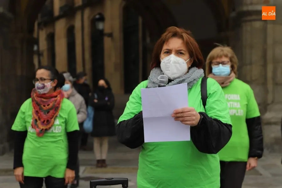 La Plataforma Salmantina de Entidades por el Empleo ha organizado un acto reivindicativo en la Plaza Mayor para mostrar su apoyo y compromiso social con las personas más vulnerables, colectivo que como consecuencia de la crisis sanitaria COVID-19, se ha visto incrementado.