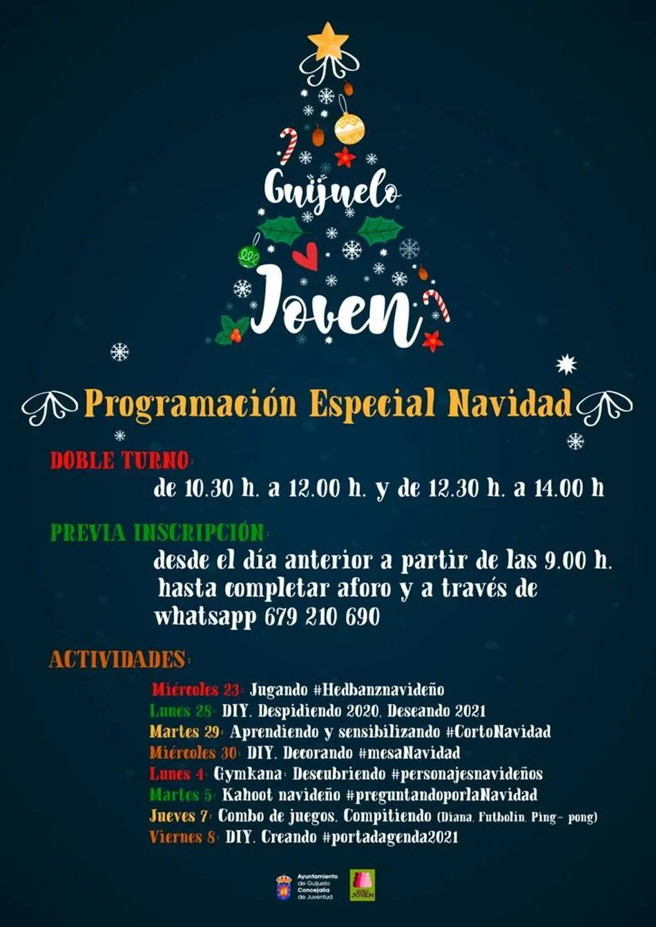 A las actividades planteadas en la Agenda de diciembre de Guijuelo Joven hay que añadir las iniciativas previstas para las mañanas de las ocho jornadas laborales no lectivas de las vacaciones de Navidad.
