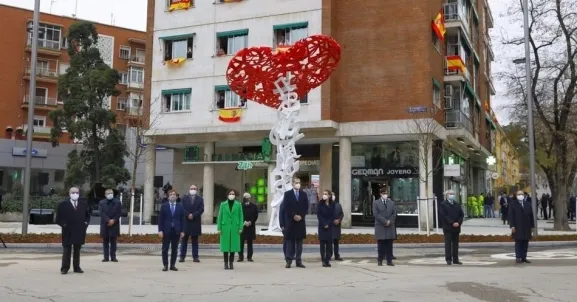 Don Felipe y Doña Letizia, acompañádos por la presidente de la Comunidad de Madrid, Isabel Díaz Ayuso; el ministro de Sanidad, Salvador Illa y el alcalde de Madrid, José Luis Martínez-Almeida, entre otras personalidades, han inaugurado este viernes la escultura 'El Árbol de la vida', realizada como homenaje a todos los profesionales sanitarios de España, y en reconocimiento a su labor, esfuerzo y compromiso durante la crisis sanitaria de la COVID-19.