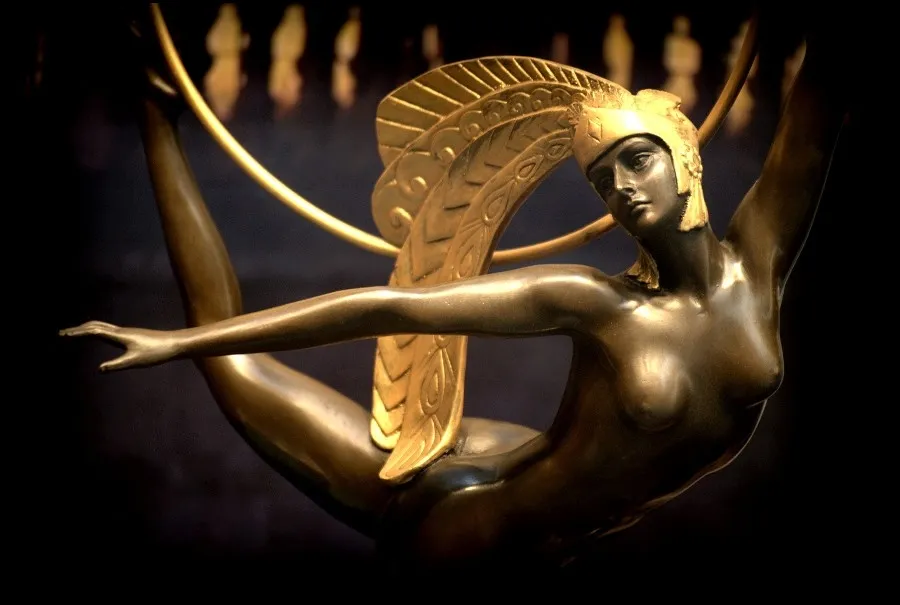 Quisieron los artesanos, los escultores de los años 20 y 30, recuperar la tradición griega de trabajar el marfil y el oro que se sustituiría por el bronce cuando la moda de las esculturas de mujeres altivas, delicadas y flotantes, llenó el imaginario europeo de bailarinas exóticas, damas emancipadas, danzantes de los ballets rusos. De brazos, dedos y rostros delicados tallados con el marfil que ahora prohibimos, las figuras, prodigio de equilibrio sobre su peana, llamadas criselefantinas, eran piezas magníficas de delicada factura. Piezas que tuvieron su momento de gloria, su olvido y después, en un quiebro del destino tan alado como su gracia, se convirtieron en objeto de deseo y búsqueda cuando ya Manuel Ramos Andrade, el anticuario originario de Navasfrías, había juntado su insuperable colección de 121 piezas absolutamente perfectas en su factura. Un empeño genial ofrecido como un regalo a la ciudad de Salamanca donde se exhibe la que es, probablemente, la colección más completa del mundo de esta manifestación tan propia de unos tiempos en los que la mujer adquirió protagonismo y la belleza inundó la vida cotidiana.
