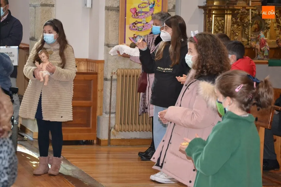 Las dos misas de la mañana del domingo en la Parroquia de San Cristóbal de Ciudad Rodrigo incluyeron sendas bendiciones de las imágenes del Niño Jesús que tienen en sus casas los fieles de la Parroquia, que llevaron con ellos hasta el templo.