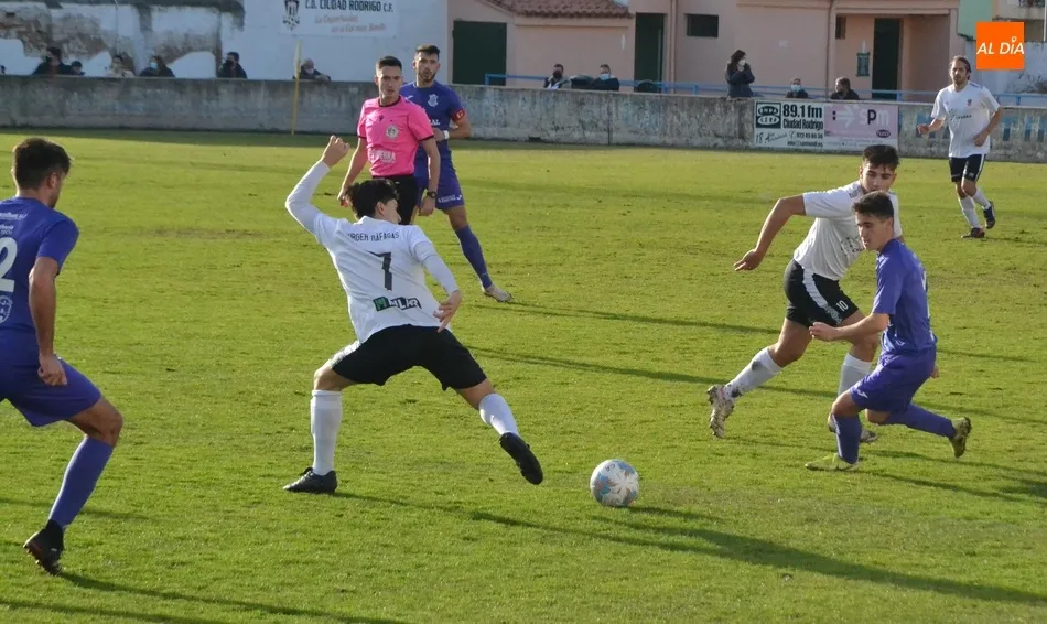 De vuelta de vestuarios, cambió poco la dinámica del encuentro, con un Ciudad Rodrigo moviendo bastante, sin prisas ni precipitaciones. De este modo, se fueron generando algunas intentonas, como un tiro de Javi Moríñigo que se fue desviado, un centro de Alberto García al que no llegó por poco Pablo López y que fue rematado en 2ª opción por Maza marchándose alto, una buena jugada de Fran y Alberto García que acabó en amarilla para éste por dejarse caer en el área, o un balón colgado por Alberto García que Pablo López remató un poco alto.