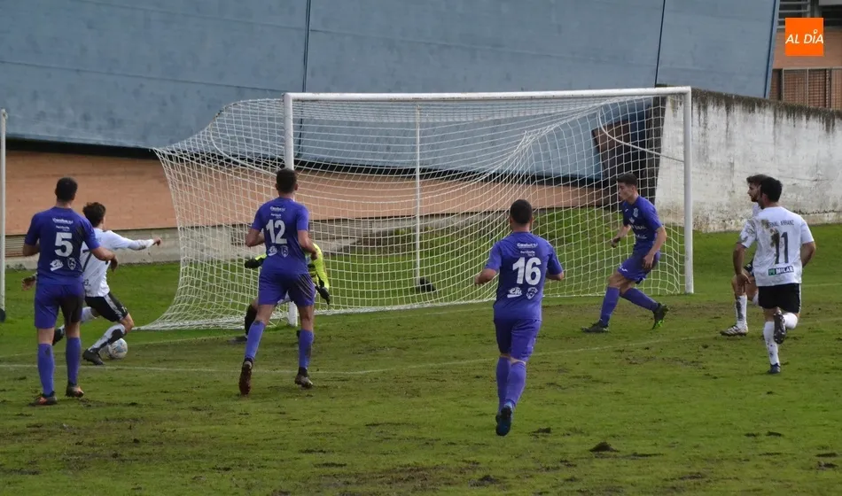 La primera gran opción llegó en el 20?: Alberto Martín colgó un balón al área para Pablo López, quién le dio un poco forzado en el aire, marchándose por muy poco por encima del larguero. Tras otra intentona a balón parado en una falta botada por Alberto García que se perdió, Maza firmó en el 24? el primer gol del curso en casa del Ciudad Rodrigo, desde el punto de penalty (igual que la semana pasada ante el Coreses), tras haber derribado el portero a Alberto García cuando se iba frente a él.