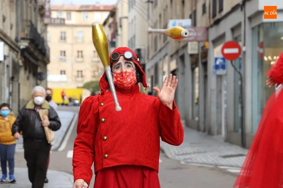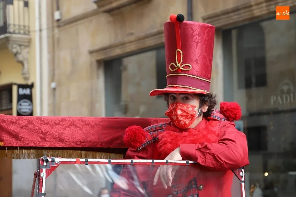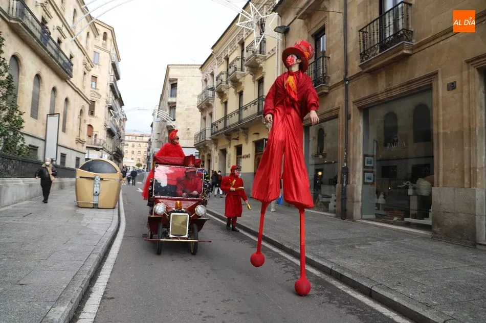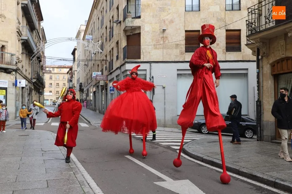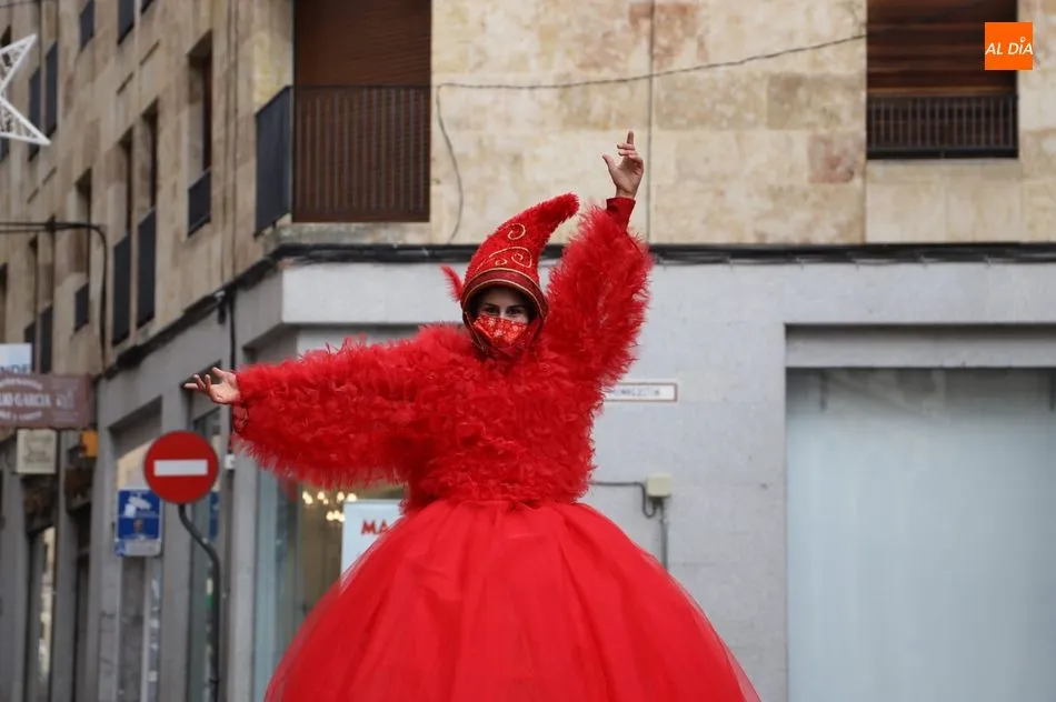 Los pasacalles animan durante estos días navideñas las zonas comerciales de Salamanca, ambientación para animar a las ventas de los establecimientos, lógicamente sin olvidar las medidas de seguridad por la pandemia. Pasacalles que han tenido como protagonistas a la compañía El Niño Lápiz y su espectáculo ?Colores red?, y que continuarán durante los próximos días como parte de la programación de Navidad organizada por el Ayuntamiento de Salamanca.