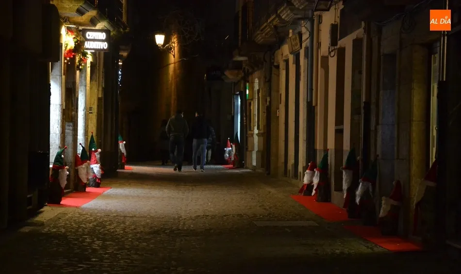 Esa galería arranca en las calles Lorenza Iglesias, Laguna, Cárcabas y San Cristóbal, donde 21 establecimientos han montado un pueblo navideño, con cajas de diversas formas apiladas a las puertas de sus establecimientos, en cuyas cristaleras se han dibujado motivos navideños. De ahí se pasa a la calle San Fernando, donde 3 establecimientos han endulzado la vía con la colocación de golosinas gigantes, incluido de lado a lado de la vía (algunas se han ido cayendo durante estas semanas).