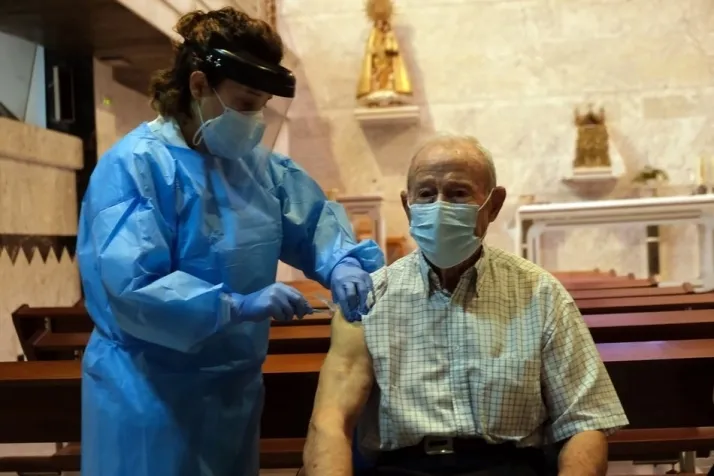 Aureo, un hombre de 88 años y usuario de la Residencia Santa Eugenia de Cevico de la Torre (Palencia), ha sido la primera persona de Castilla y León en recibir la vacuna contra el coronavirus.