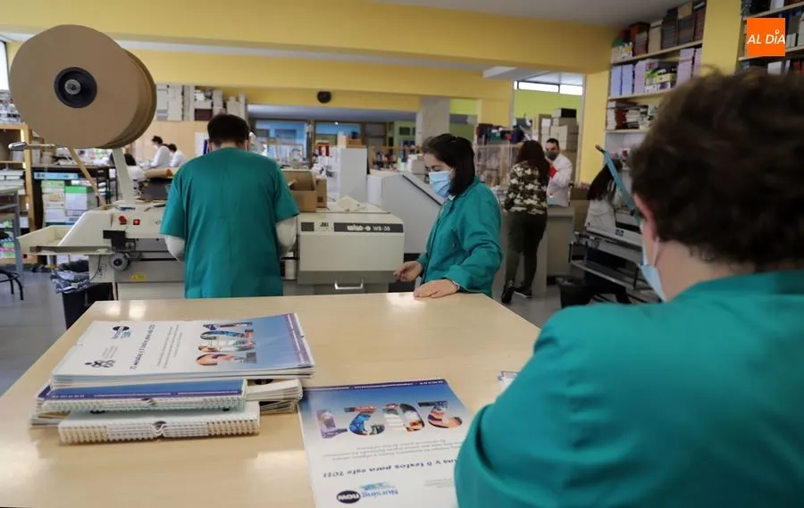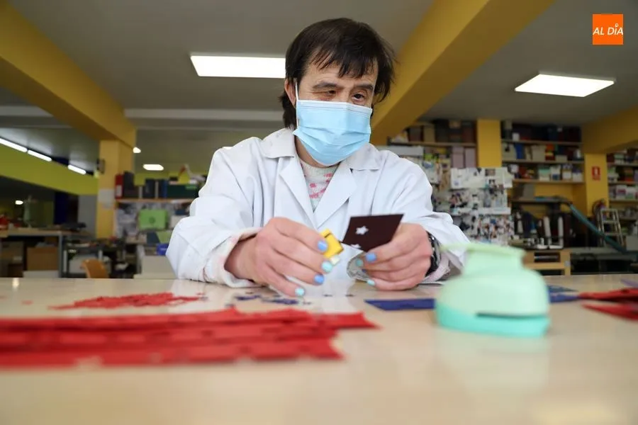 En total, Insolamis cuenta con 52 usuarios, junto a los siete que comprende el centro especial de empleo. En cuanto a este programa, Martín destaca que ?es la parte productiva, funciona como una empresa y trabajan bajo pedido con el manipulado (cesta de navidad, calendarios u otros artículos). Aquí también hemos notado la pandemia, porque, por ejemplo, la Universidad de Salamanca era uno de los principales clientes, que encargaba carpetas para cursos extraordinarios y congresos, que ahora no se celebran?.