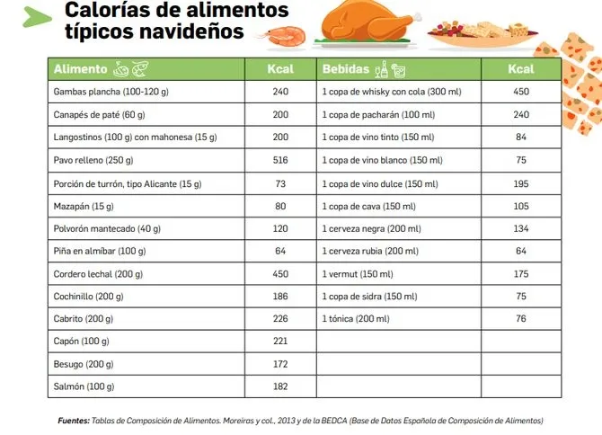 El Consejo General de Colegios Oficiales de Farmacéuticos, a través de su Vocalía Nacional de Alimentación, ha presentado un decálogo con consejos y pautas saludables para una correcta alimentación durante la Navidad. Así, junto a las recomendaciones para las comidas y cenas propias de estos días, el decálogo incluye también información sobre el contenido calórico de algunos alimentos y bebidas que tradicionalmente se consumen durante las celebraciones navideñas.