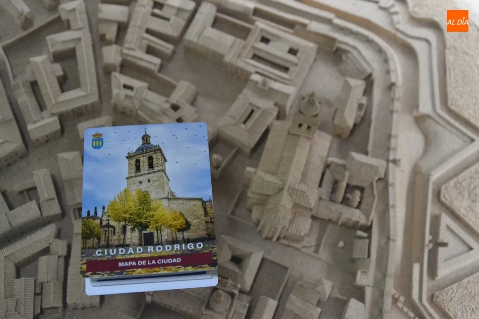 El nuevo formato del plano es tamaño tarjeta, con ?tapas duras?, figurando en la portada una imagen de la Catedral de Santa María, y en la contraportada, una del Castillo de Enrique II de Trastámara. Una vez desplegado el nuevo recurso, en la cara ?principal? figura el plano propiamente dicho, con un listado de los principales monumentos de Ciudad Rodrigo, así como la leyenda de lugares significativos, de alojamiento o de las sedes de las fuerzas de seguridad.
