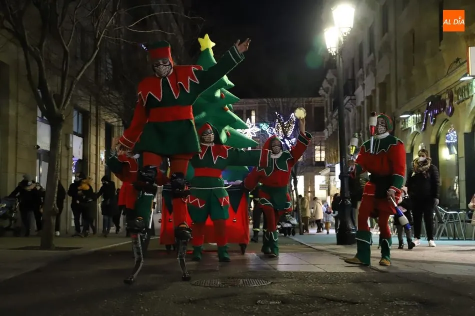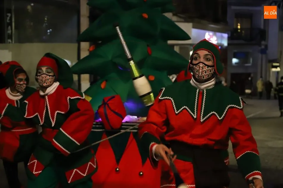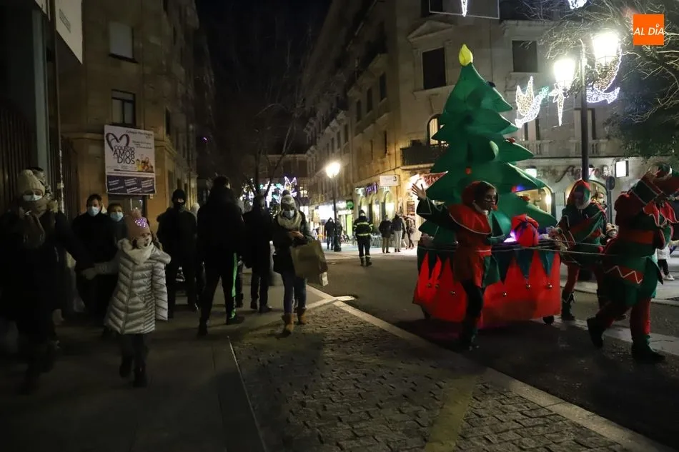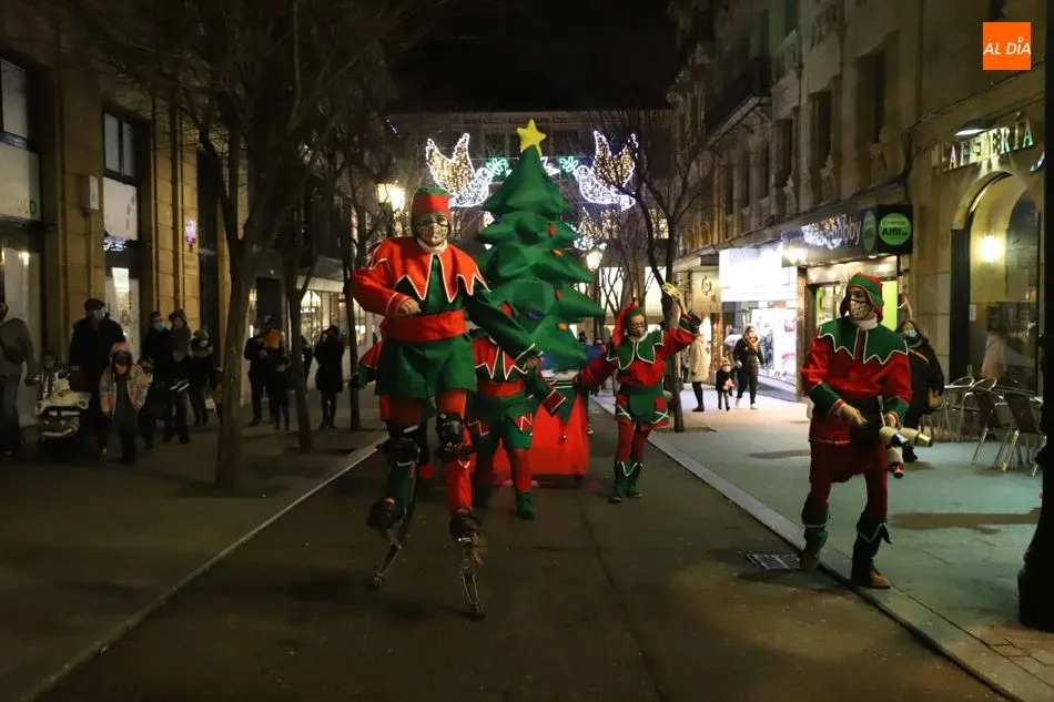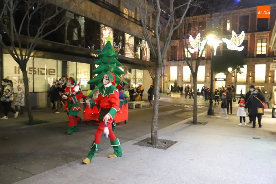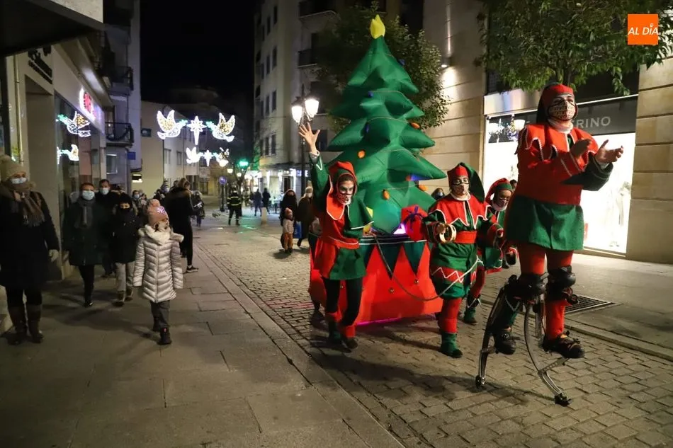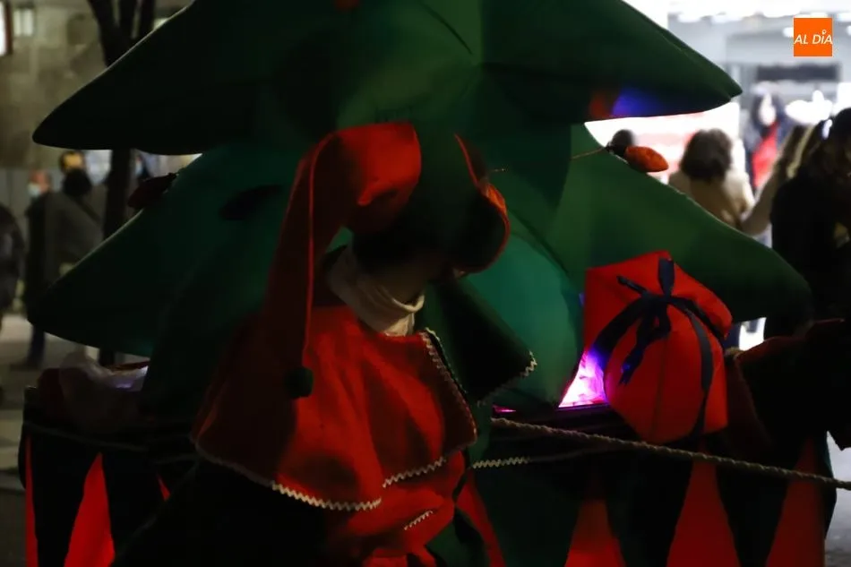 Una vez más, la compañía Kamaru Teatro, ha recorrido las calles contagiando de su espíritu alegre y festivo, ya que su objetivo es repartir la alegría de la Navidad a mayores y pequeños. Y junto a ellos, un árbol de Navidad de 2,30 metros de altura que han llevado por la calle Azafranal, subida calle Cristo de los Milagros, calle Toro, calle Vázquez Coronado, calle Zamora, Plaza Mayor, calle Toro y plaza del Liceo.