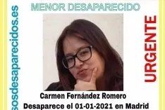 La Asociación SOS Desaparecidos ha pedido ayuda este lunes para localizar a Carmen Fernández Romero, una adolescente de 17 años desaparecida el día de Año Nuevo en Madrid.