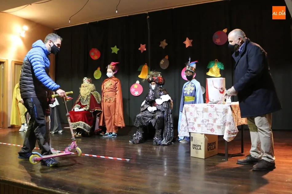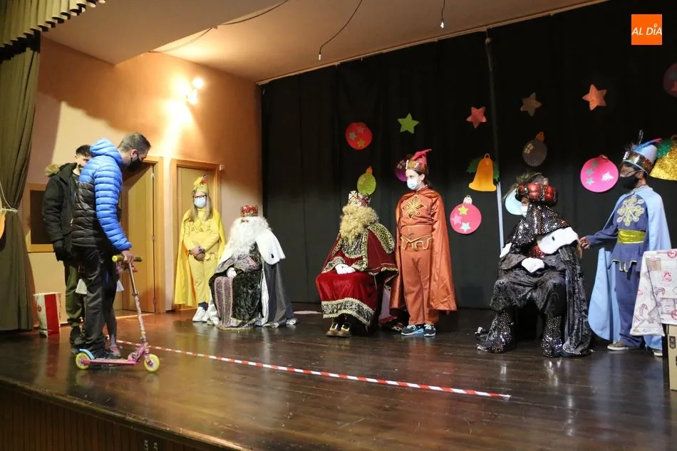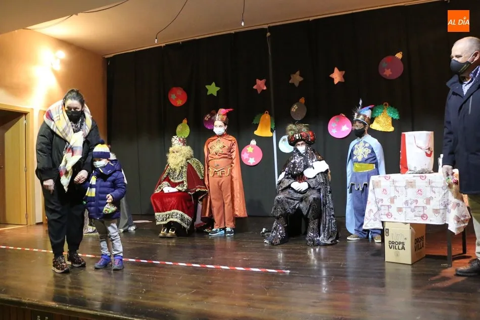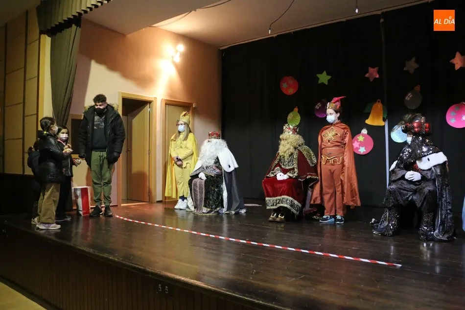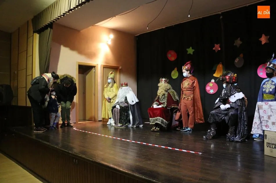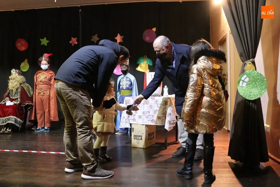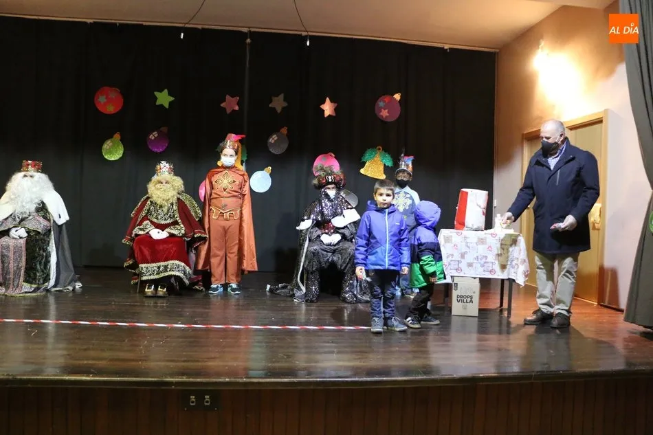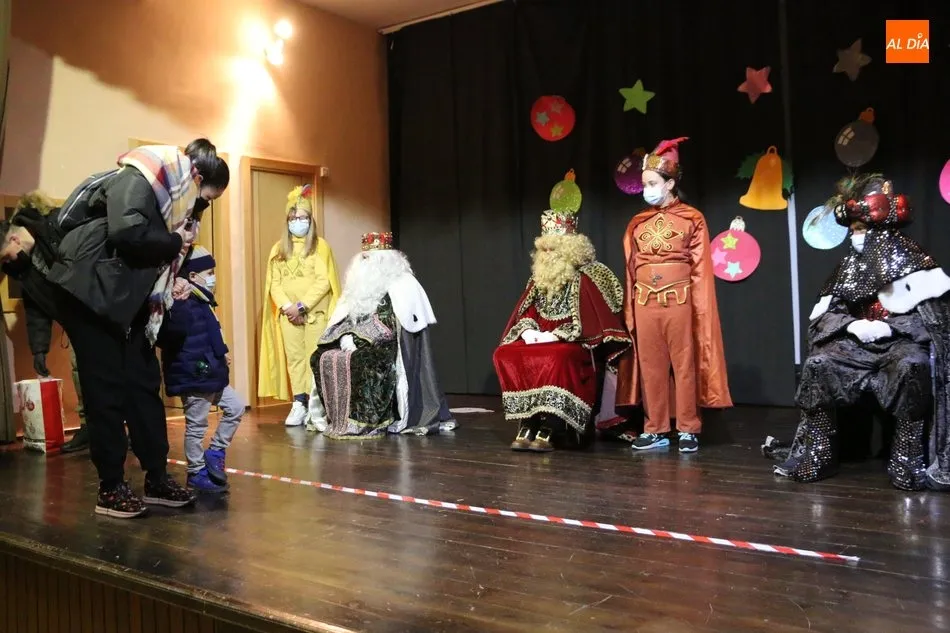 Sobre el escenario y acompañados de sus inseparables pajes, los Reyes de Oriente escucharon de los pequeños las peticiones de última hora, acto que se desarrollaba con un circuito de entrada y de salida, y sin contacto con SS.MM., provistos de mascarillas y distanciamiento social. Al finalizar el recorrido, el alcalde de la localidad, Julián Martín, les hacía entrega de una bolsa de caramelos.