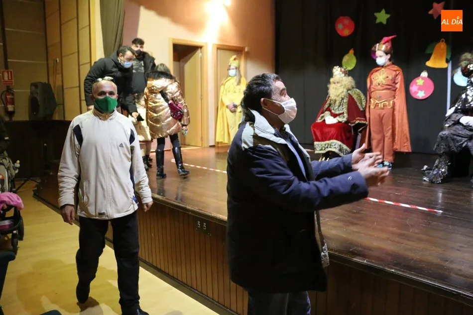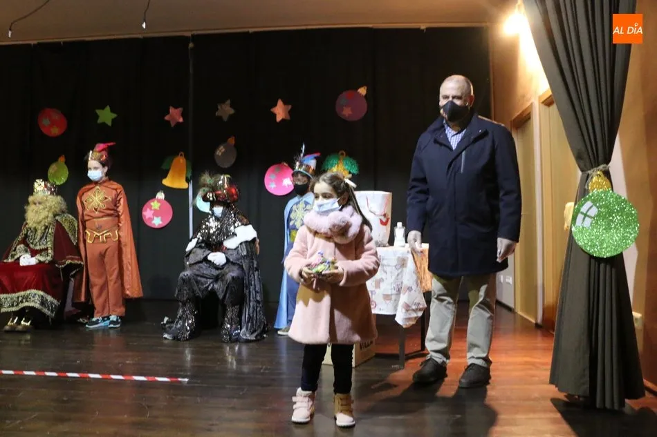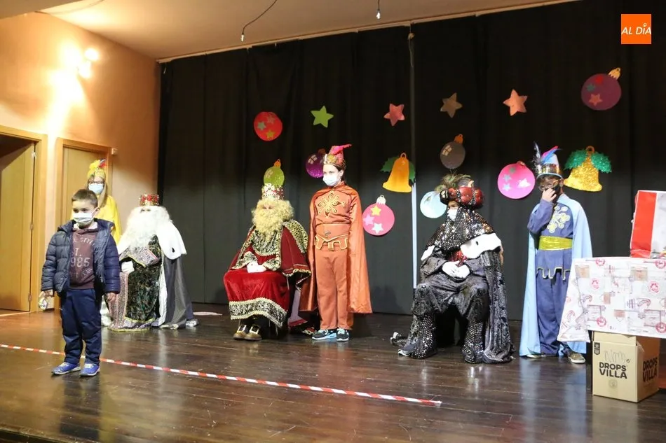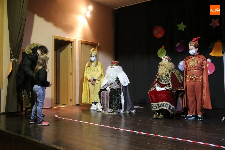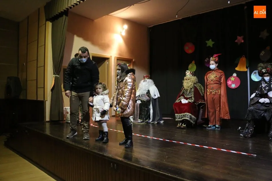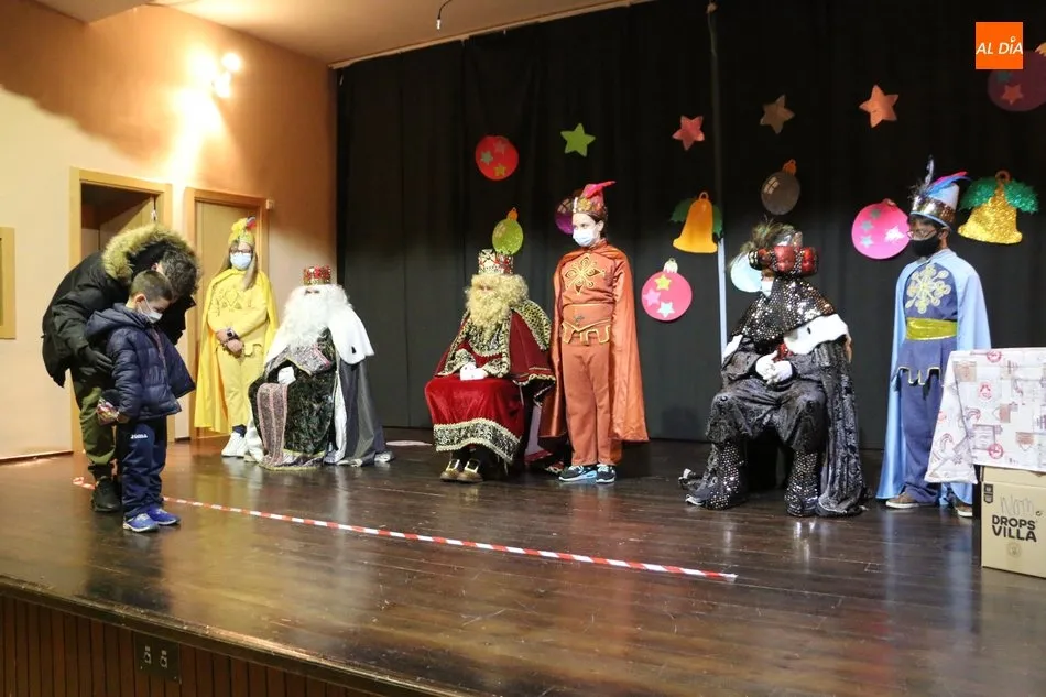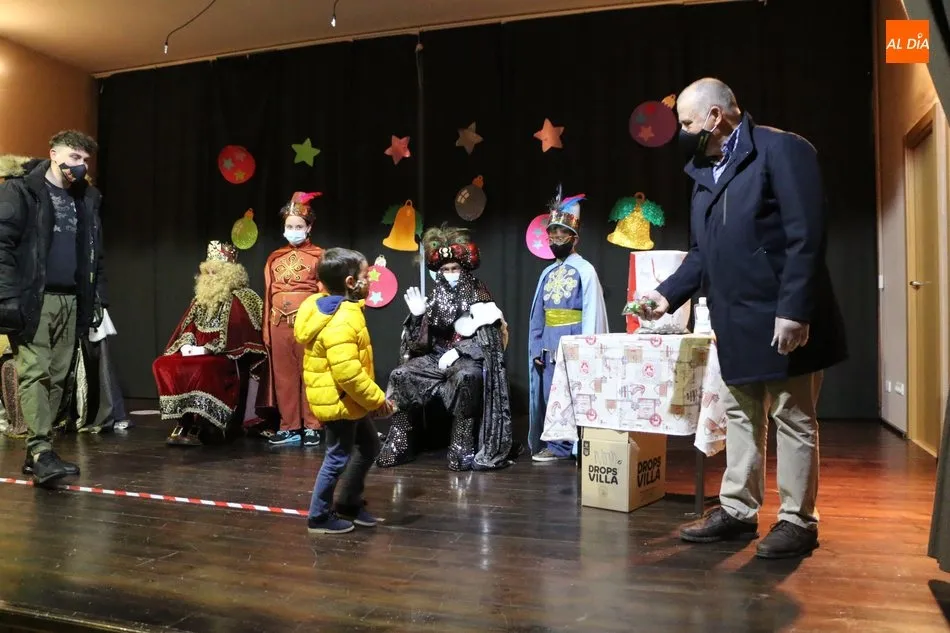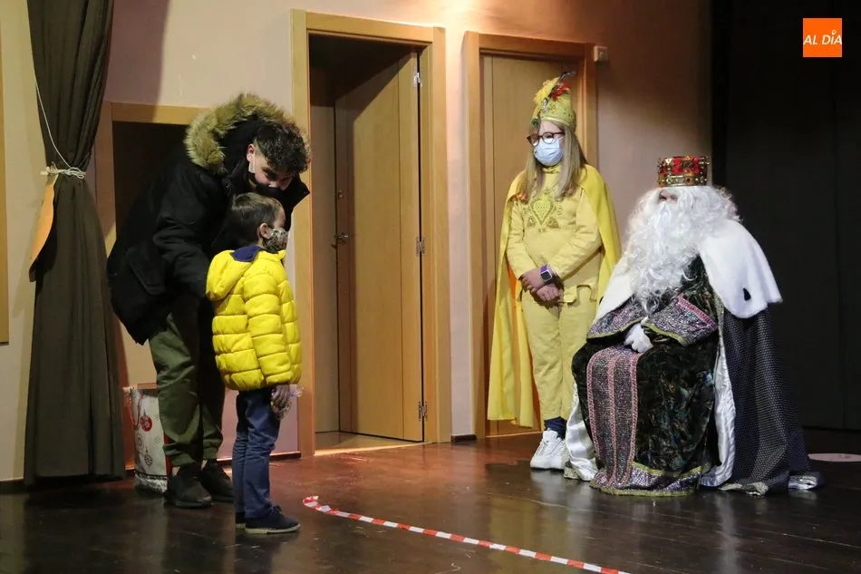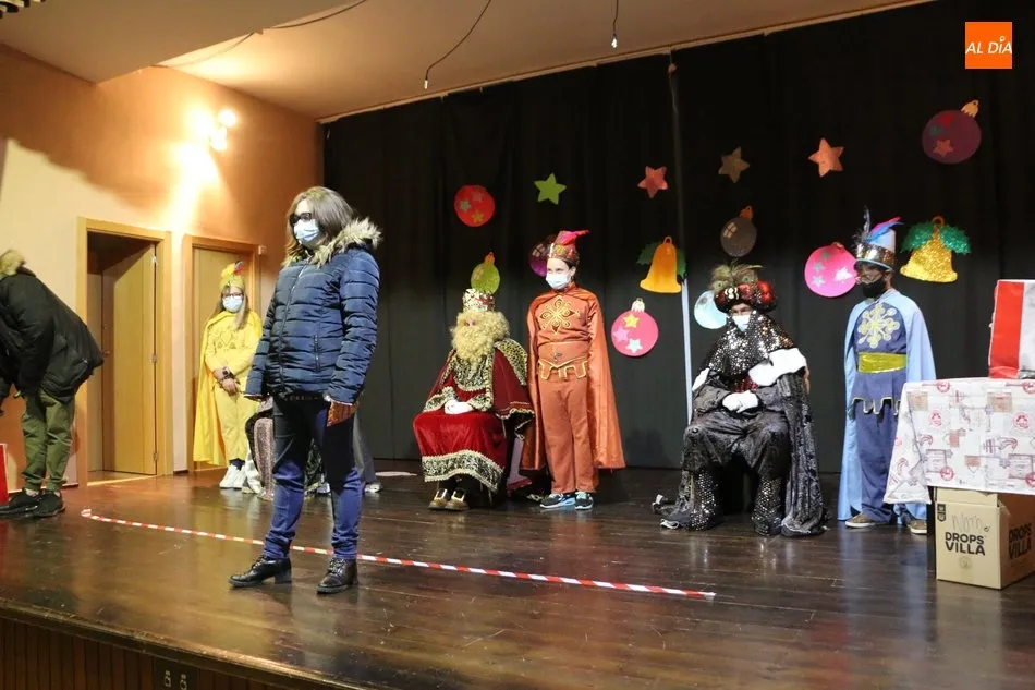 Sobre el escenario y acompañados de sus inseparables pajes, los Reyes de Oriente escucharon de los pequeños las peticiones de última hora, acto que se desarrollaba con un circuito de entrada y de salida, y sin contacto con SS.MM., provistos de mascarillas y distanciamiento social. Al finalizar el recorrido, el alcalde de la localidad, Julián Martín, les hacía entrega de una bolsa de caramelos.