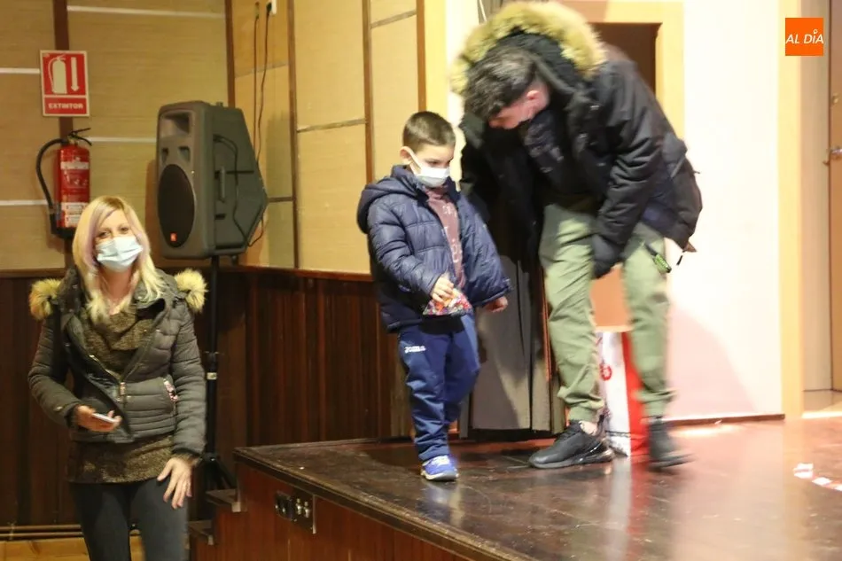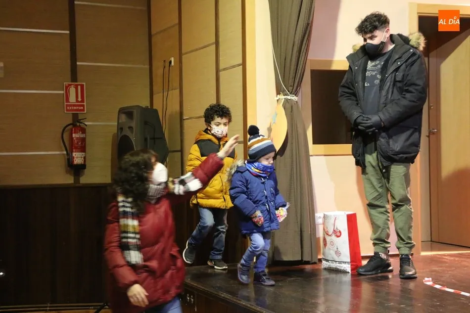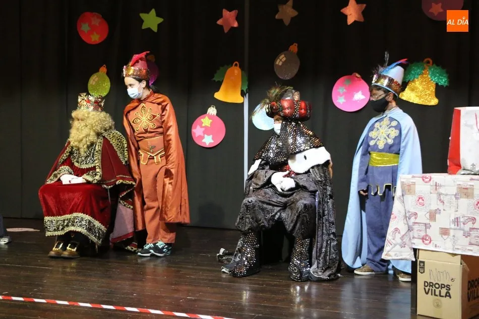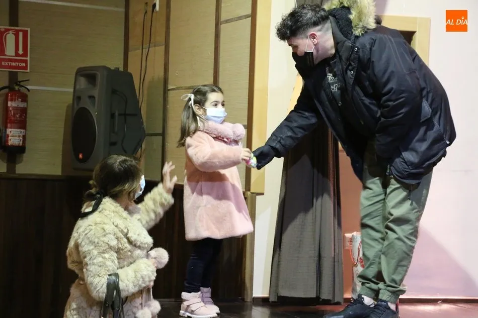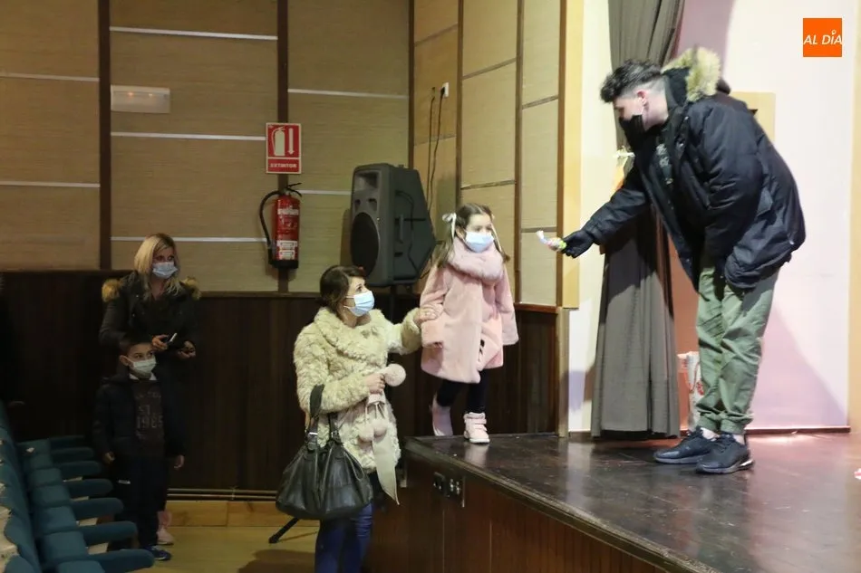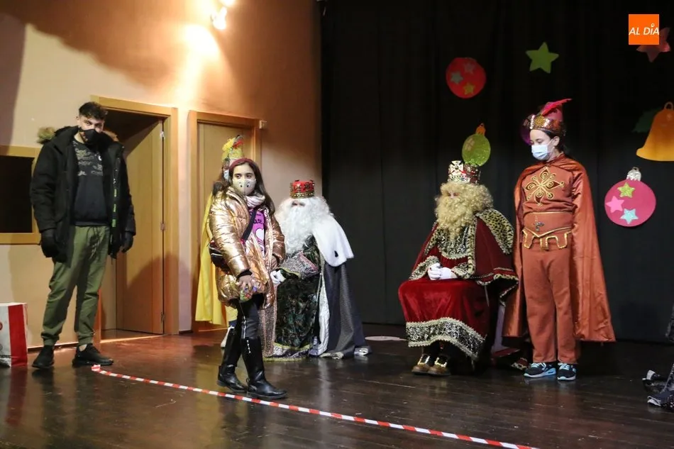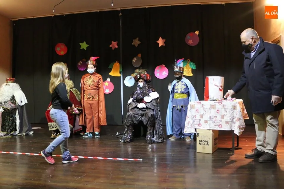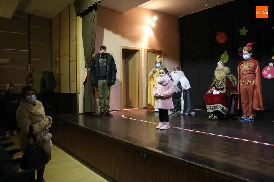 Sobre el escenario y acompañados de sus inseparables pajes, los Reyes de Oriente escucharon de los pequeños las peticiones de última hora, acto que se desarrollaba con un circuito de entrada y de salida, y sin contacto con SS.MM., provistos de mascarillas y distanciamiento social. Al finalizar el recorrido, el alcalde de la localidad, Julián Martín, les hacía entrega de una bolsa de caramelos.
