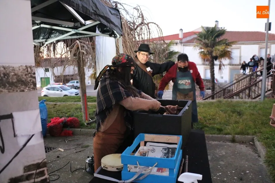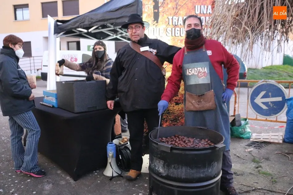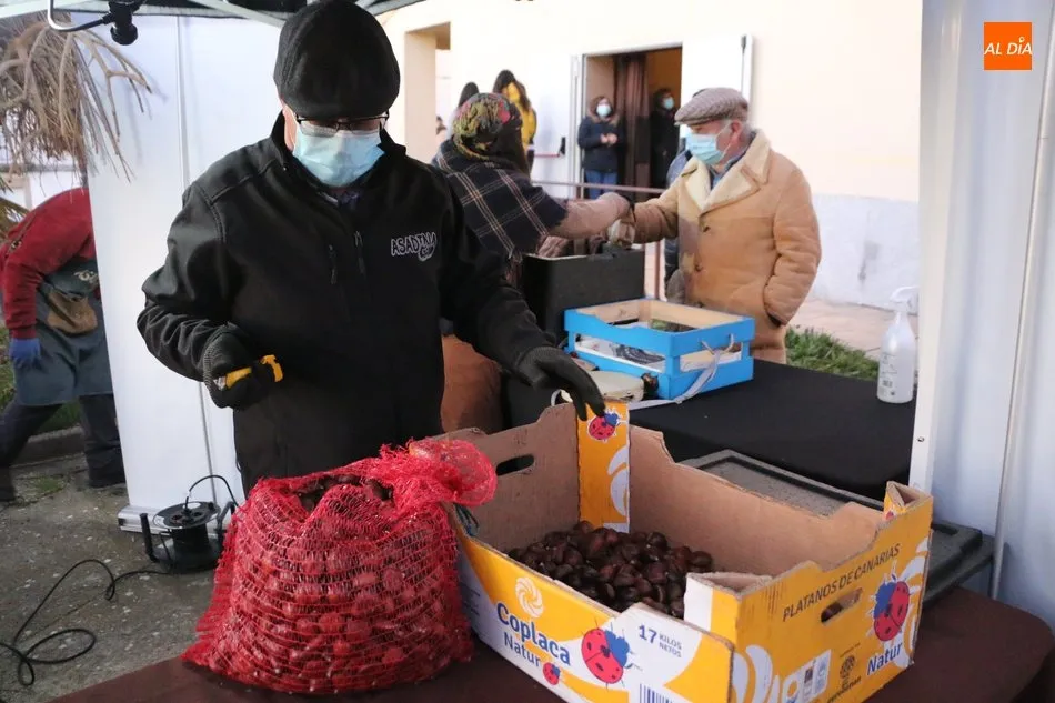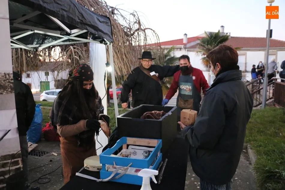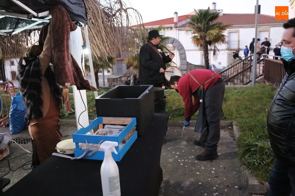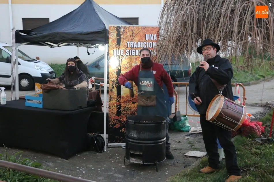 Además de la visita de los Reyes, pequeños y mayores participaban en una degustación de castañas asadas organizada por el Ayuntamiento, un acto que estuvo amenizado por los sones de la gaita y el tamboril.
