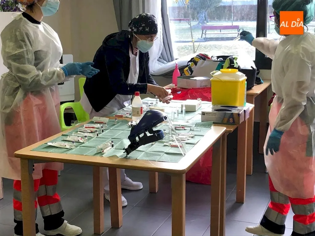 La residencia San Antonio de Padua de Sieteiglesias de Tormes ha comenzado este jueves a vacunar a sus residentes. El primero en recibir el fármaco ha sido Santiago Peral López, de 99 años de edad y que es a la vez el residente más longevo del centro para mayores. En total los sanitarios han vacunado a un total de 140 personas, entre residentes y trabajadores.