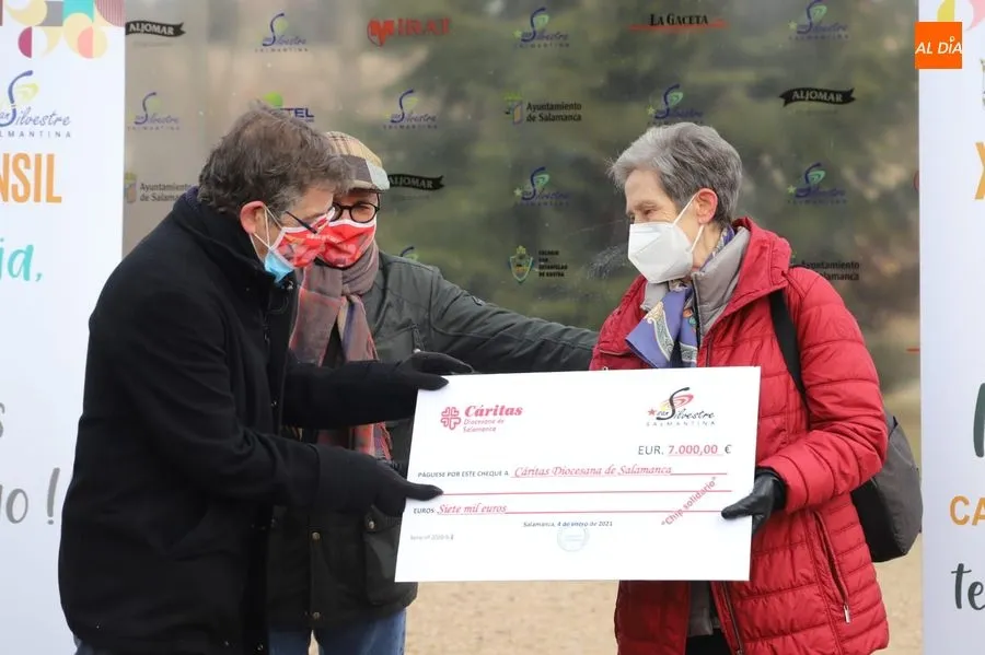 Así, los responsables de esta carrera popular han podido entregar 14.000 euros a Cáritas y Cruz Roja. José Antonio Molinero, presidente de la San Silvestre Salmantina, explicaba que esta edición ha sido ?distinta para intentar paliar las necesidades de las personas que lo han pasado mal. Ha sido complicado pero gratificante. Es nuestro granito de arena para tratar de ayudar?.